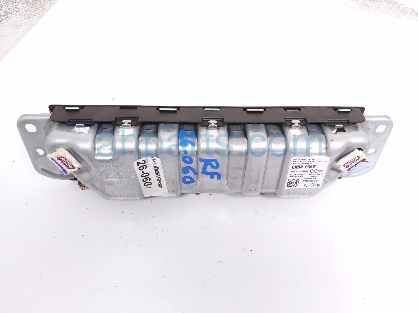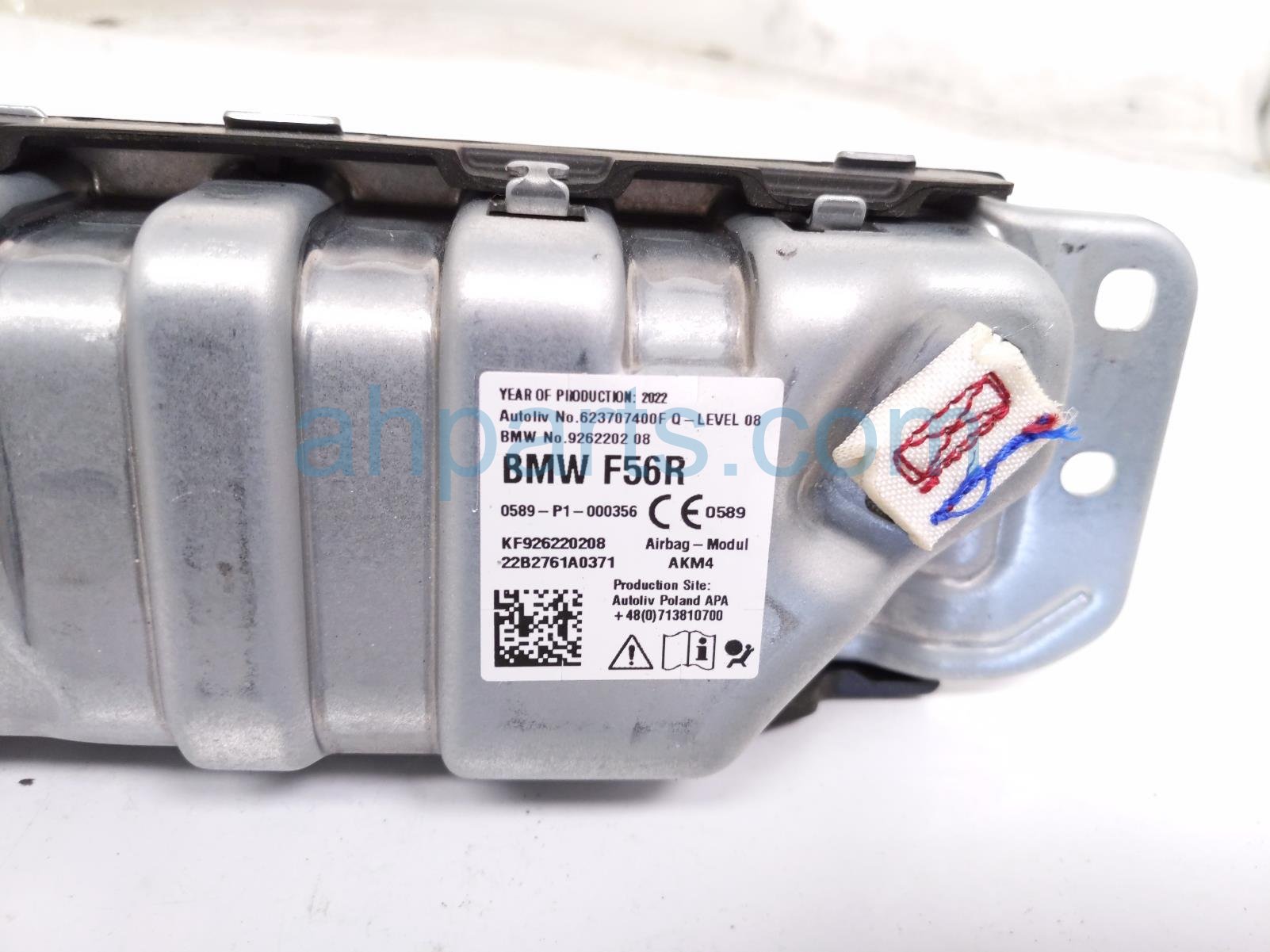 2023 BMW Mini Cooper airbag passenger knee air bag is a used item with a 1 year warranty. This OEM replacement airbag passenger knee air bag is genuine and has part numbers 72-12-9-262-202, 72129262202, 9262202, 623707400F, KF926220208, 22B2761A0371, 622230901 and E. This BMW part is for sale (please call for pricing).