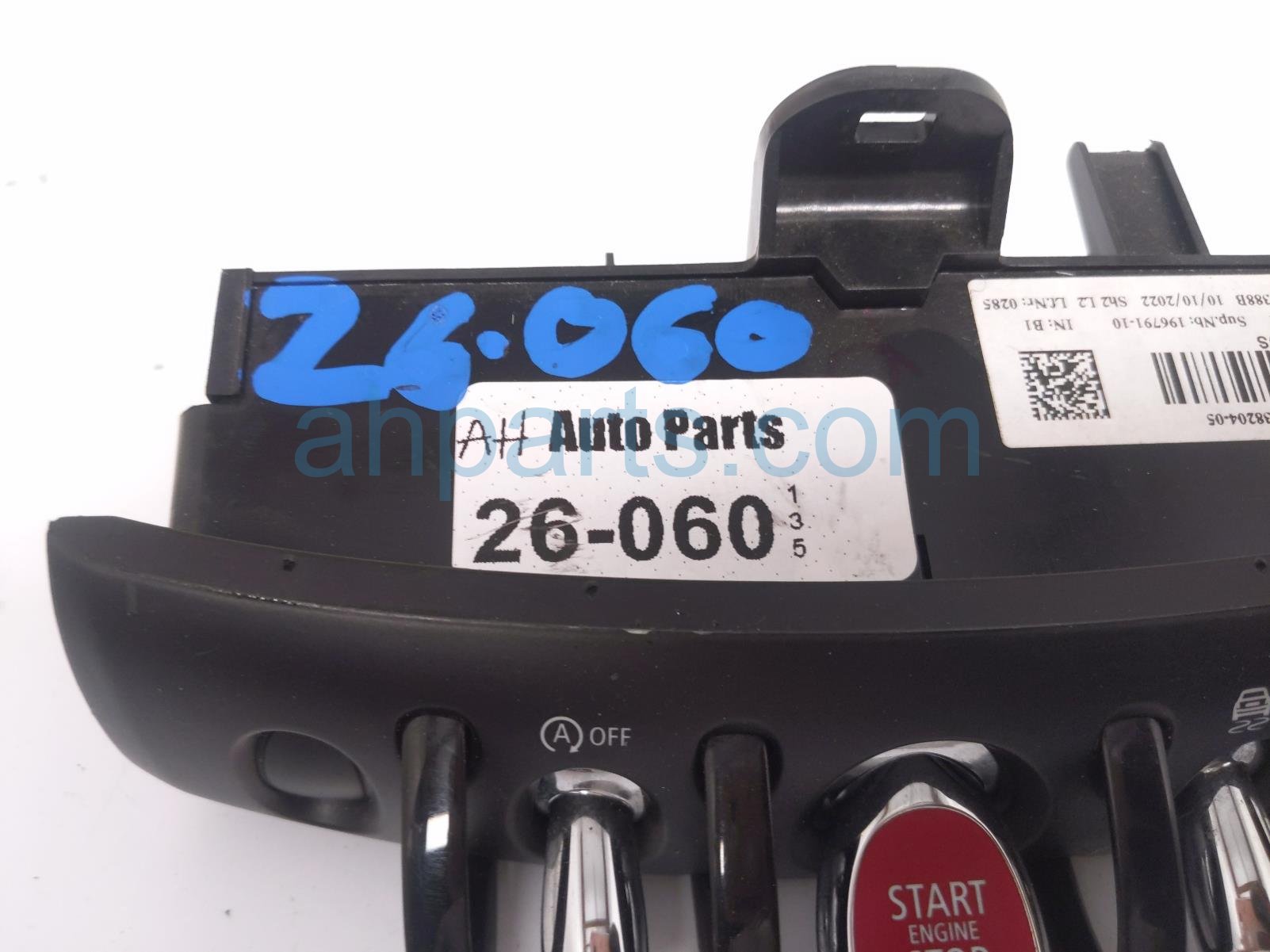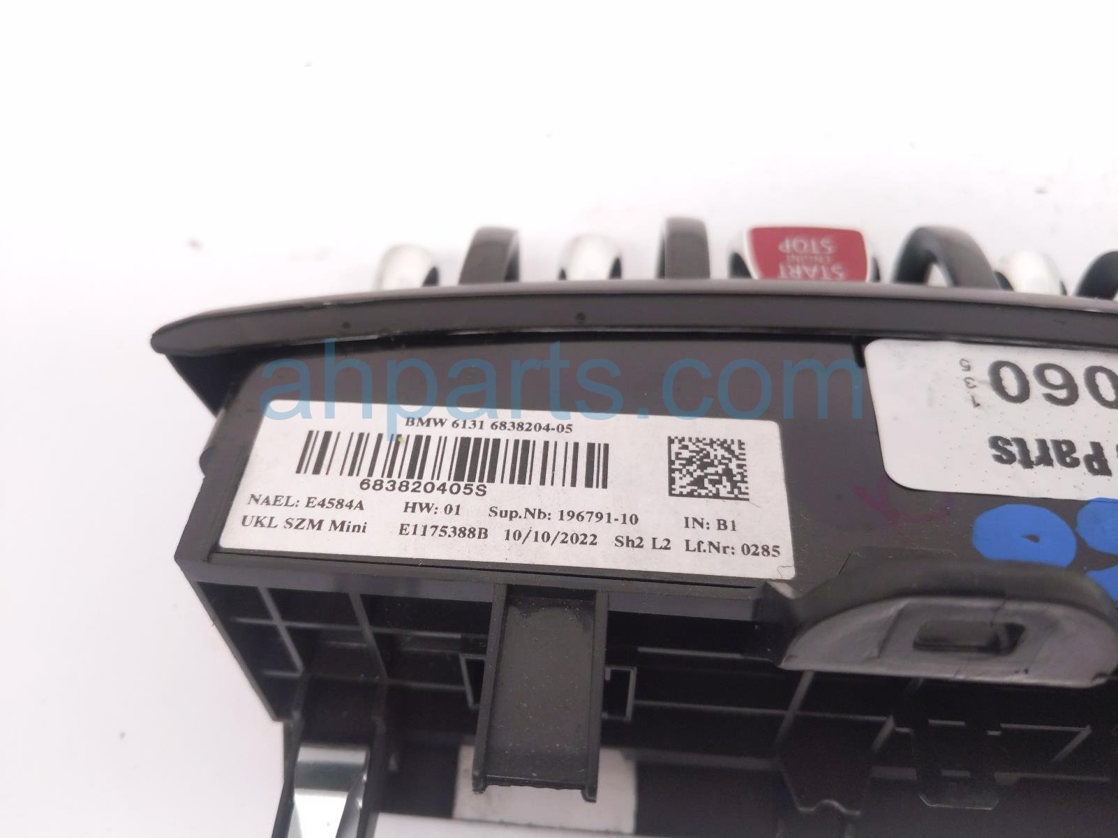 2023 BMW Mini Cooper center console start/stop sw is a used item with a 1 year warranty. This OEM replacement center console start/stop sw is genuine and has part numbers 61-31-6-838-204, and 61316838204. This BMW part is for sale (please call for pricing).