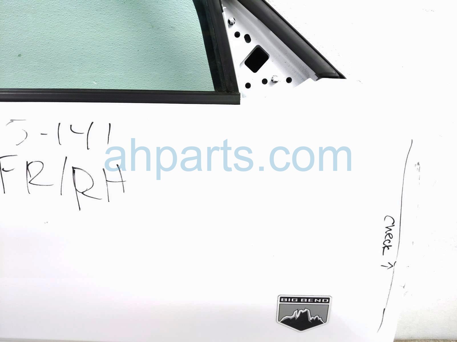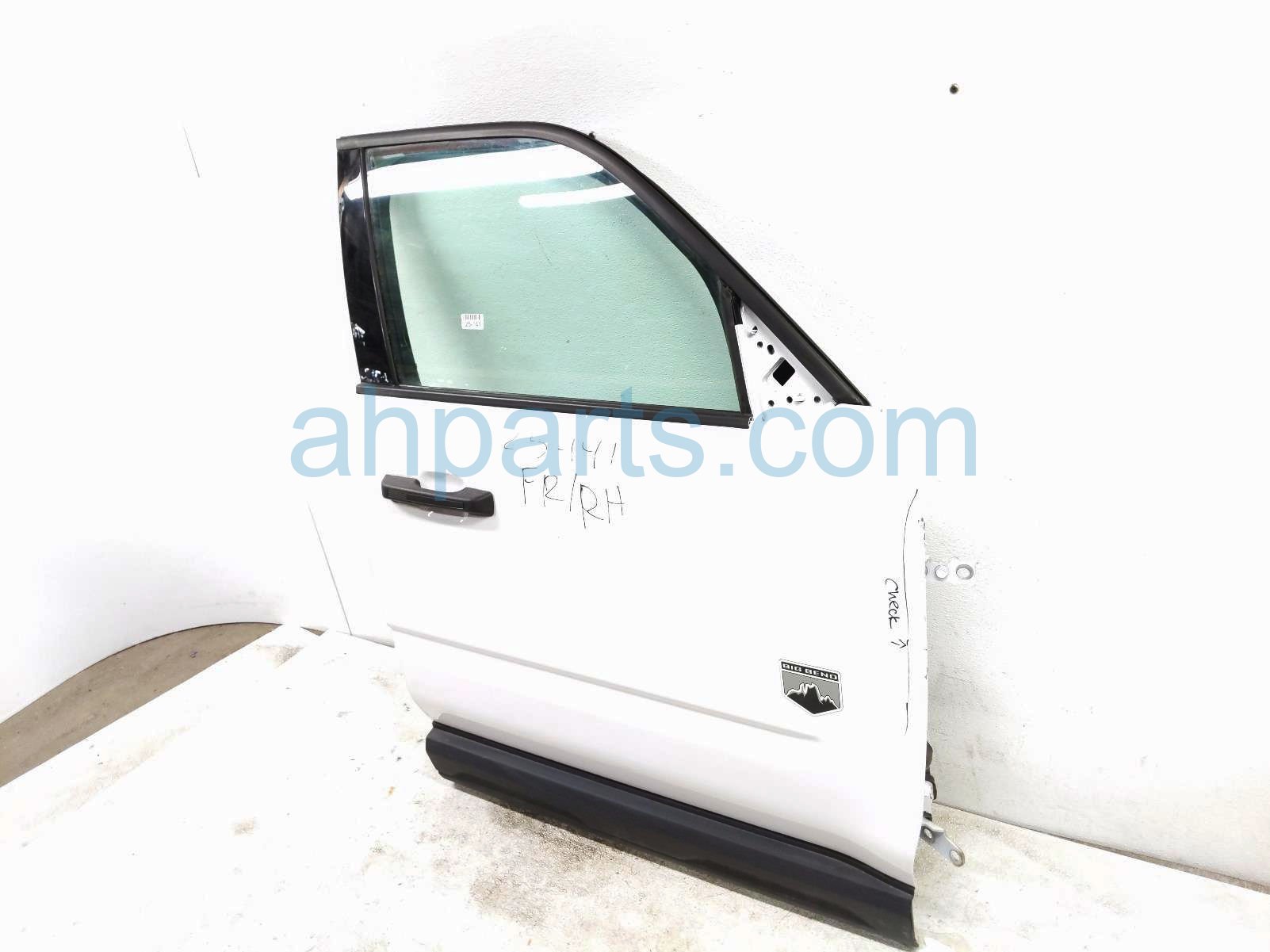 2023 Ford Broncospt front passenger door- white - no mirror/trim* is a used item with a 1 year warranty. This OEM replacement front passenger door- white - no mirror/trim* is genuine and has part numbers M1PZ-7823208-A, M1PZ7823208A, M1PZ-9923394-B, M1PZ9923394B, M1PZ-7821410-B, M1PZ7821410B, M1PZ-7821596-A, M1PZ7821596A, S1PZ-7820124-A, and S1PZ7820124A. This Ford part sells for $795. This item has the following note: 'Fender edge has paint chips - grade b.'