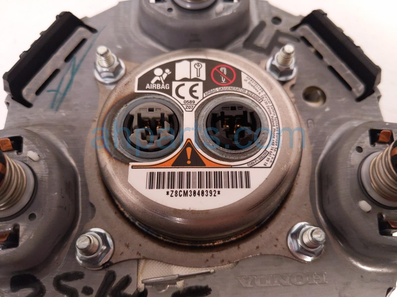 2023 Honda Accord driver wheel airbag is a used item with a 1 year warranty. This OEM replacement driver wheel airbag is genuine and has part numbers 77801-30A-A82ZA, and 7780130AA82ZA. This Honda part sells for $795.