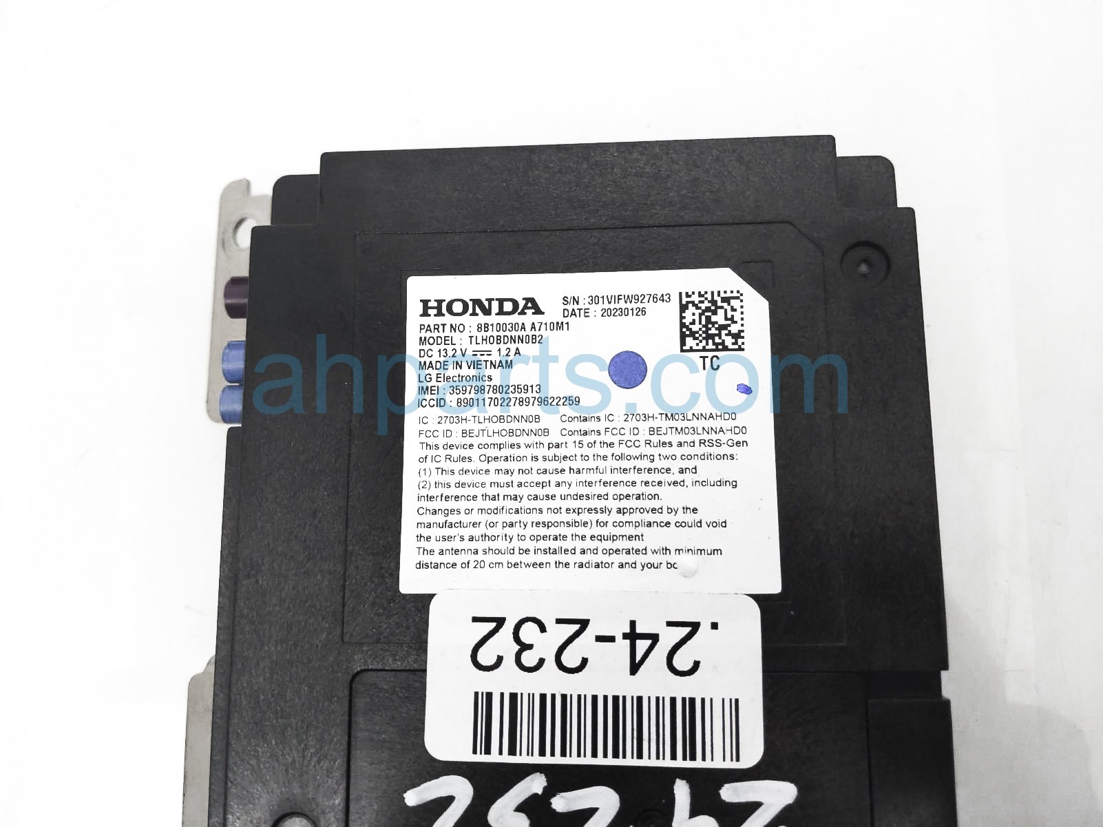 2023 Honda Accord telematics module unit - lx 1.5t is a used item with a 1 year warranty. This OEM replacement telematics module unit - lx 1.5t is genuine and has part numbers 8B100-30A-A74, and 8B10030AA74. This Honda part sells for $100.