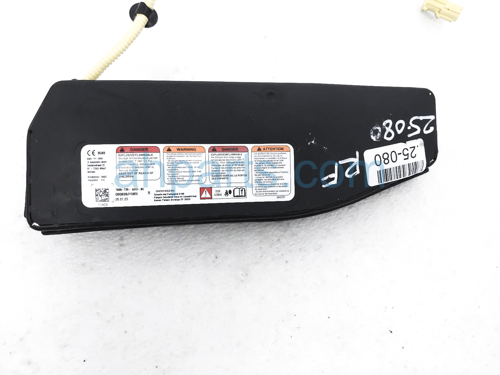 2023 Honda Civic passenger seat airbag is a used item with a 1 year warranty. This OEM replacement passenger seat airbag is genuine and has part numbers 78000-T20-A613-M1, and 78000T20A613M1. This Honda part sells for $235.