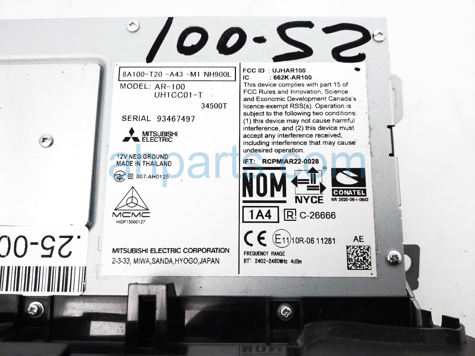 - Audio Unit Screen - Honda (8A100-T20-A43)