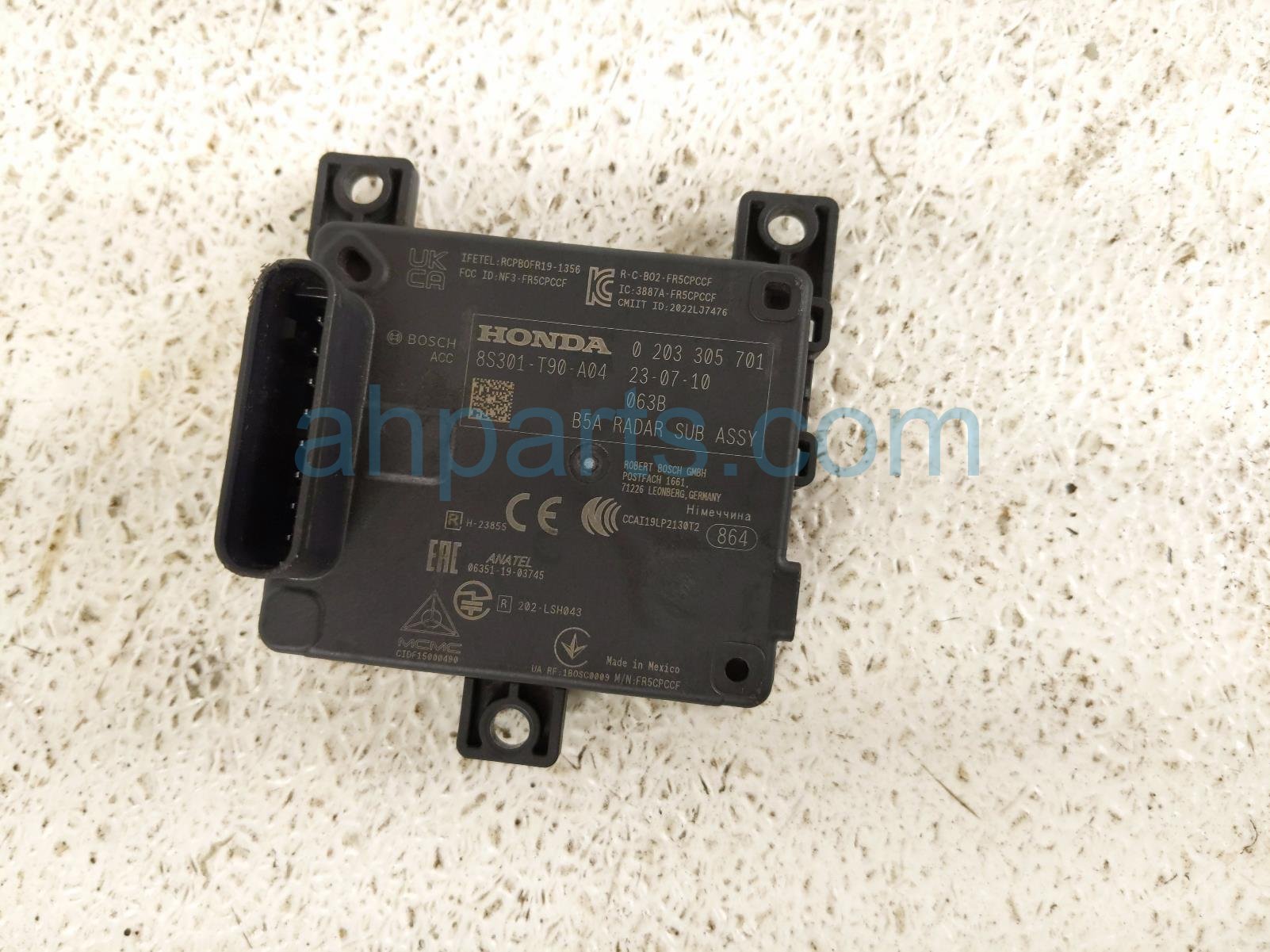 2023 Honda Pilot front grille distance radar unit is a used item with a 1 year warranty. This OEM replacement front grille distance radar unit is genuine and has part numbers 8s301-T90-A04, 8s301T90A04, 8S303-T91-A23, and 8S303T91A23. This Honda part is for sale (please call for pricing).