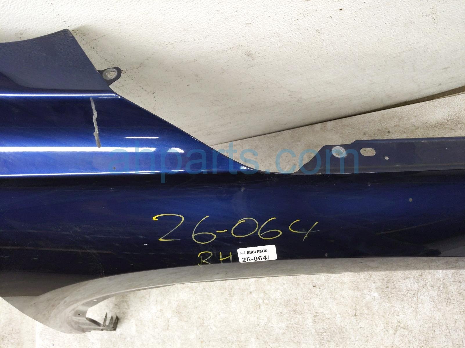 2023 Honda Pilot front passenger fender - blue is a used item with a 1 year warranty. This OEM replacement front passenger fender - blue is genuine and has part numbers 60210-T90-A00ZZ, and 60210T90A00ZZ. This Honda part is for sale (please call for pricing). This item has the following note: 'Dented/paint chipped.'