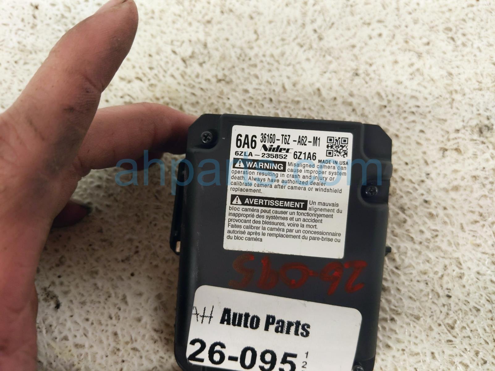 2023 Honda Ridgeline front lane assist camera unit is a used item with a 1 year warranty. This OEM replacement front lane assist camera unit is genuine and has part numbers 36160-T6Z-A62, and 36160T6ZA62. This Honda part is for sale (please call for pricing).
