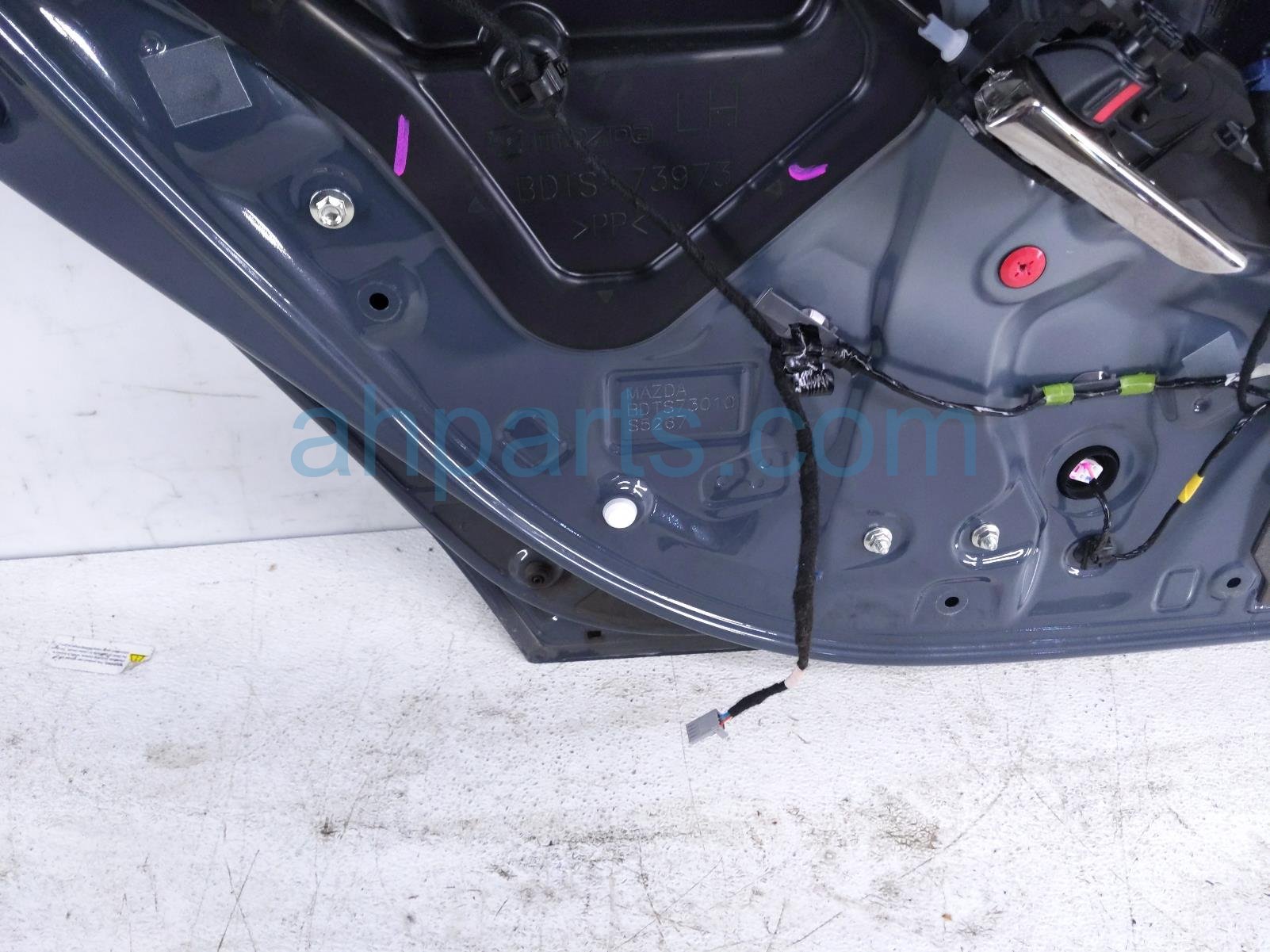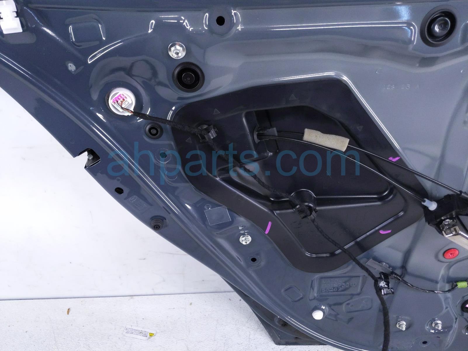 2023 Mazda 3 rear driver door - grey - no inside trim* is a used item with a 1 year warranty. This OEM replacement rear driver door - grey - no inside trim* is genuine and has part numbers BDY0-73-02XC, BDY07302XC, BDTS-67-220, and BDTS67220. This Mazda part sells for $599. This item has the following note: 'This item has a large scuff on the paint.'