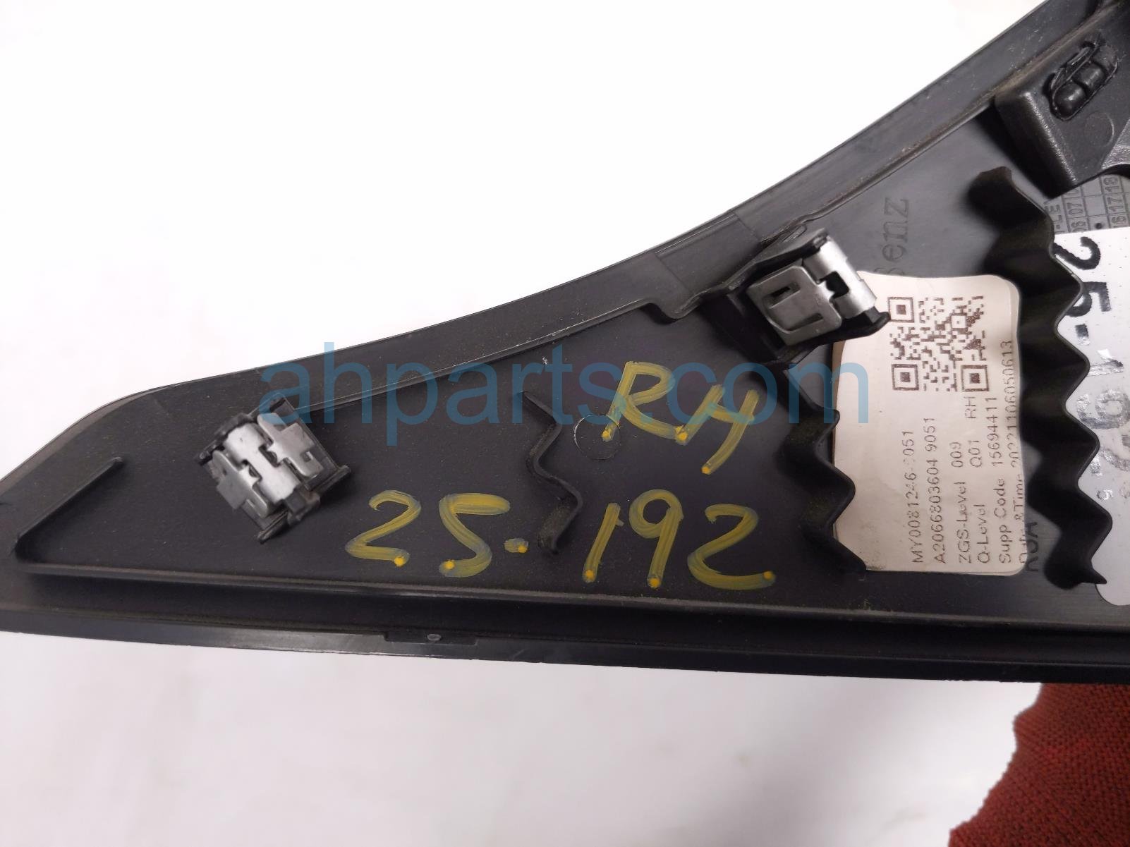 2023 Mercedes C300 passenger console side trim garnish is a used item with a 1 year warranty. This OEM replacement passenger console side trim garnish is genuine and has part numbers 206-680-36-04, and 2066803604. This Mercedes part sells for $25.