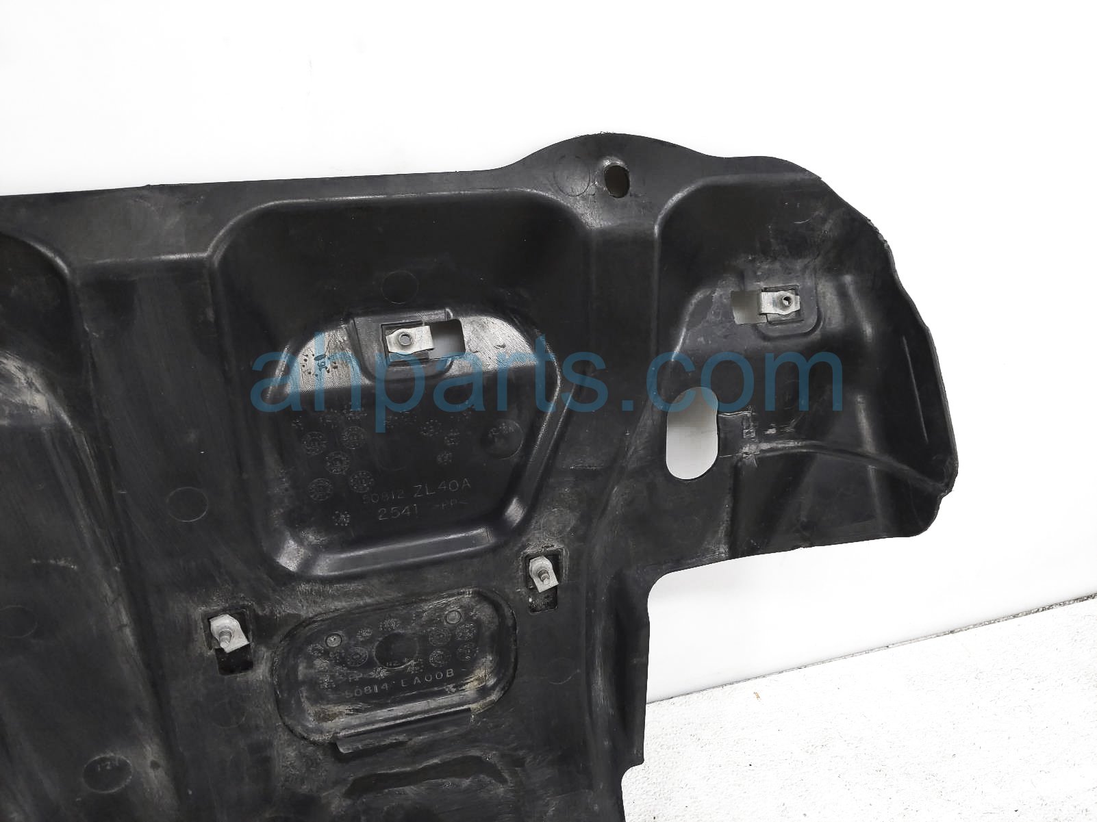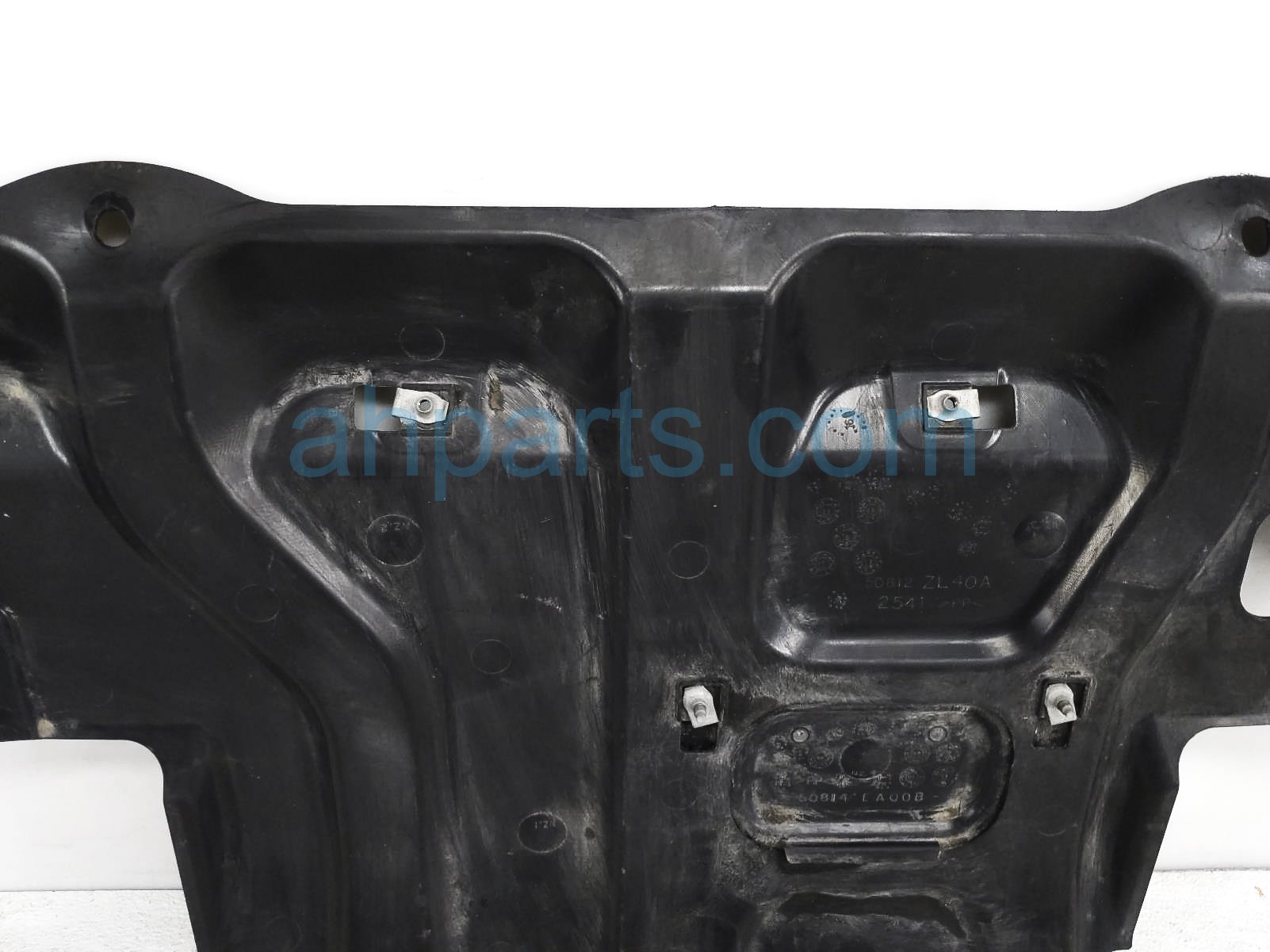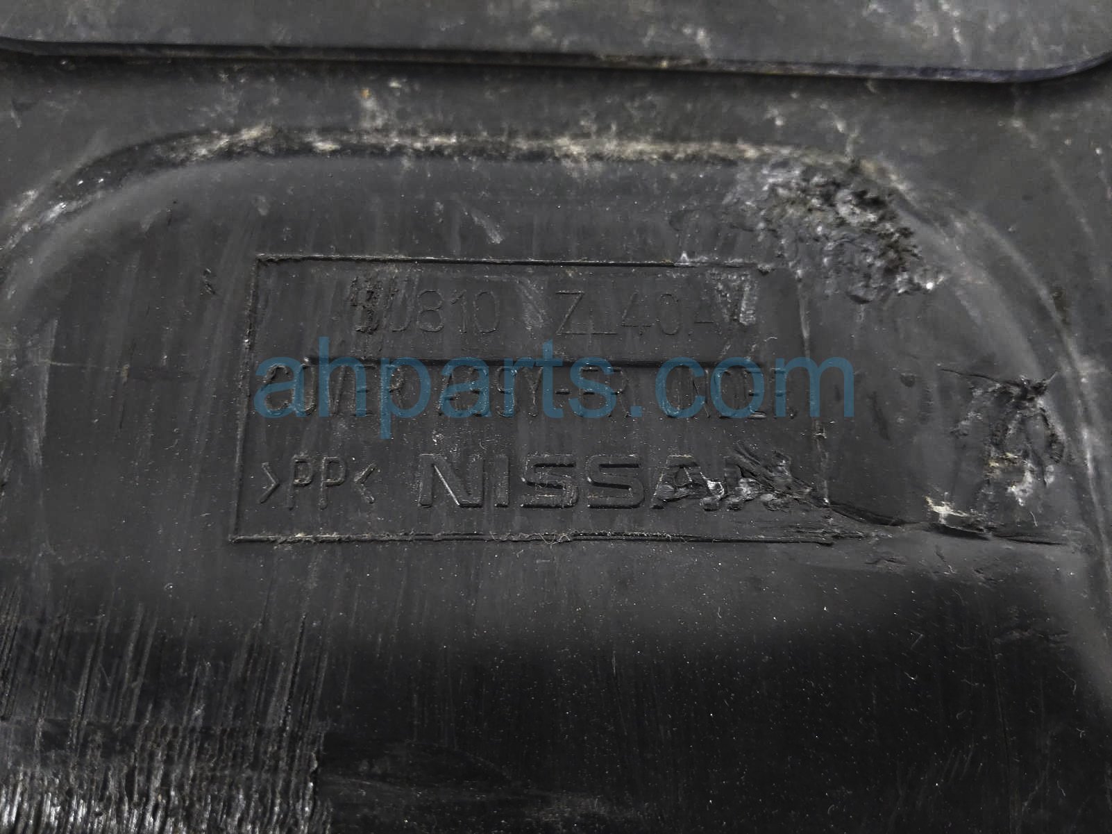 2023 Nissan Frontier under engine cover splash shield is a used item with a 1 year warranty. This OEM replacement under engine cover splash shield is genuine and has part numbers 50810-ZL40A, and 50810ZL40A. This Nissan part sells for $50. This item has the following note: 'This item is cracked on the bottom section and scuffs - grade c.'