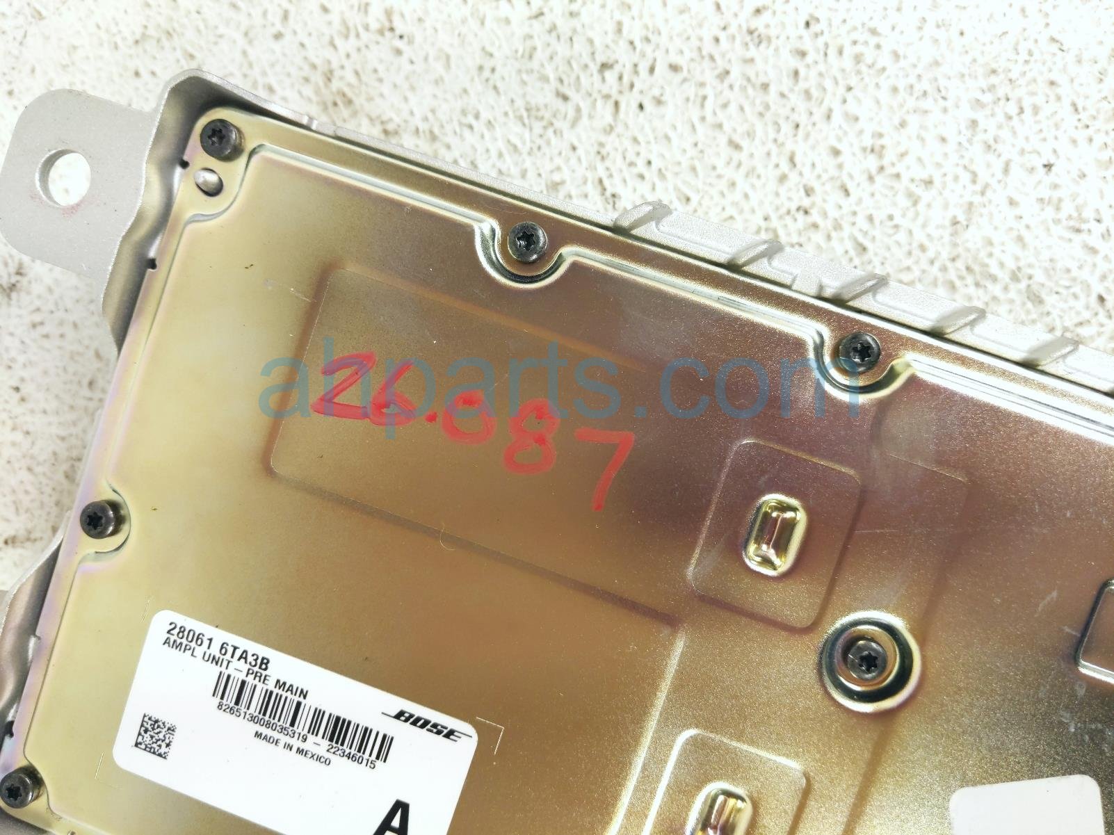 2023 Nissan Pathfinder audio amplifier is a used item with a 1 year warranty. This OEM replacement audio amplifier is genuine and has part numbers 28061-6TA3B, and 280616TA3B. This Nissan part is for sale (please call for pricing).