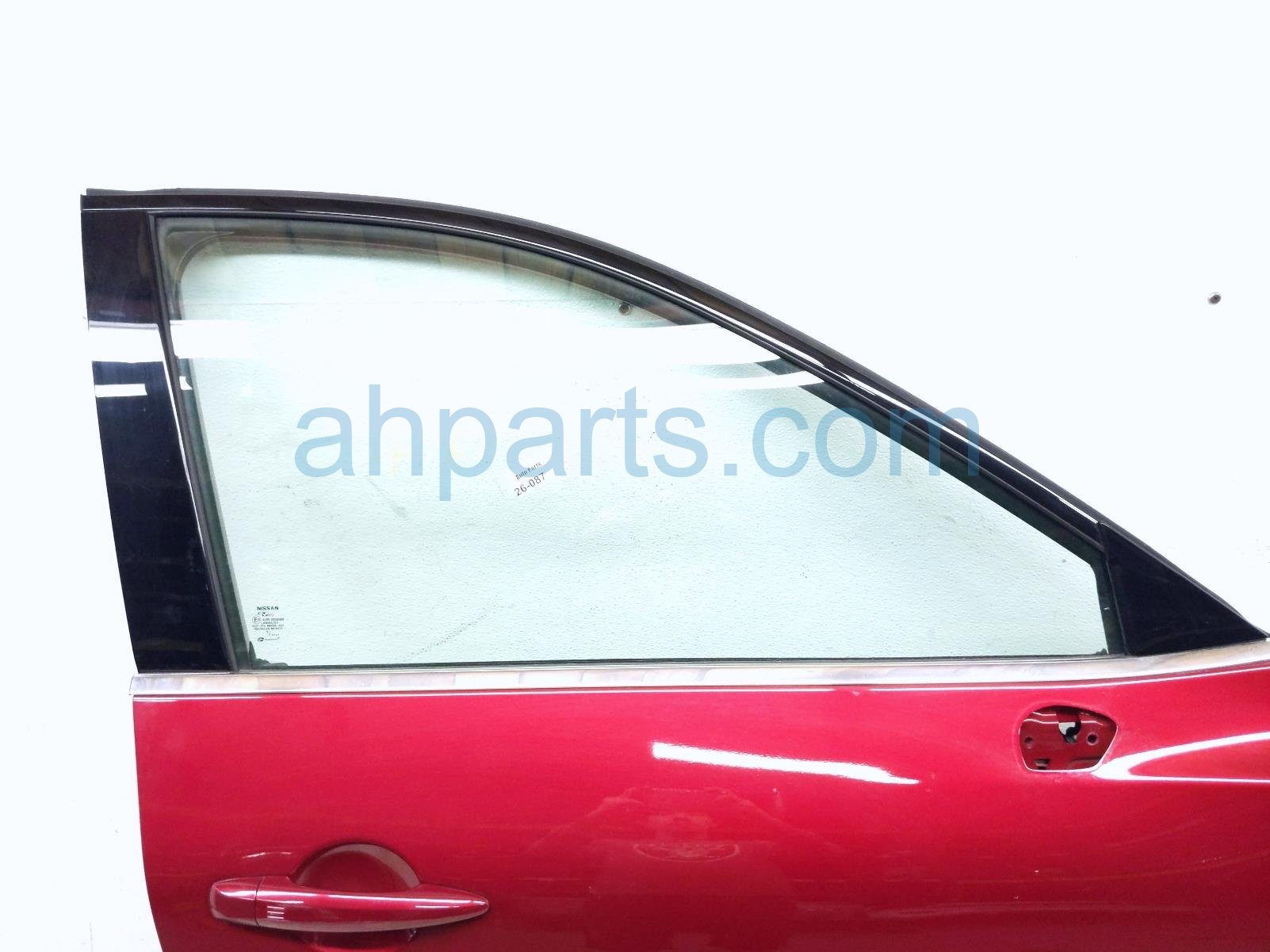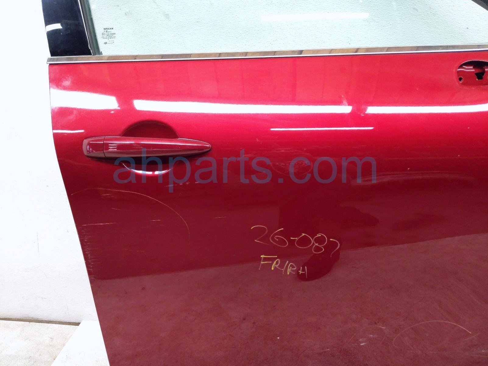 2023 Nissan Pathfinder front passenger door - red - no mirror/trim* is a used item with a 1 year warranty. This OEM replacement front passenger door - red - no mirror/trim* is genuine and has part numbers 24124-6TU0E, 241246TU0E, 80300-6TA1A, 803006TA1A, 80100-6TA3A, and 801006TA3A. This Nissan part is for sale (please call for pricing). This item has the following note: 'Has dents scraped/deep scratches/dings.'