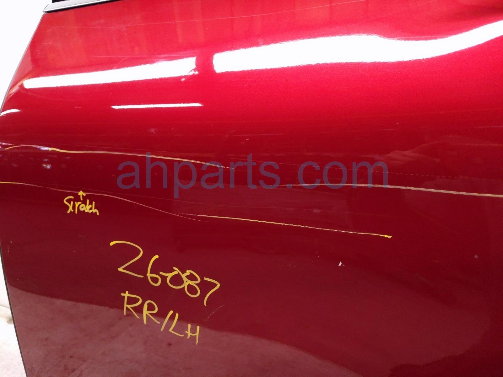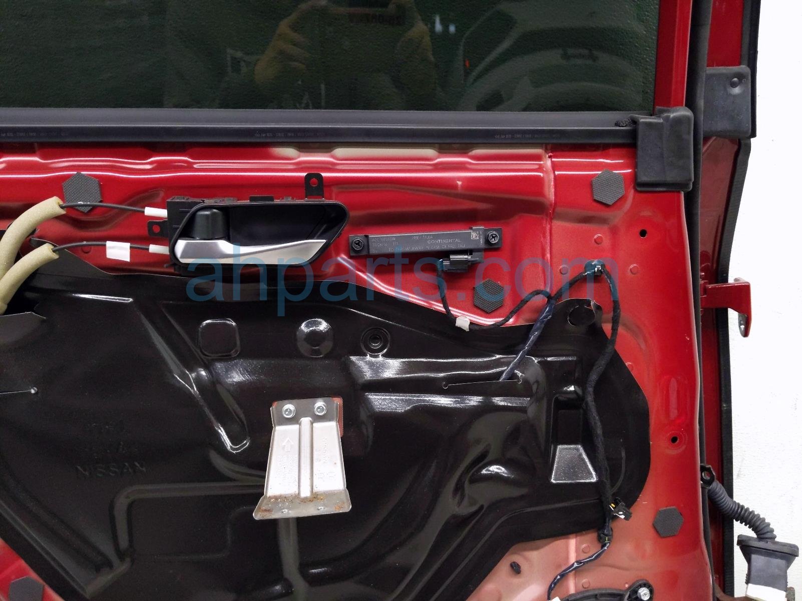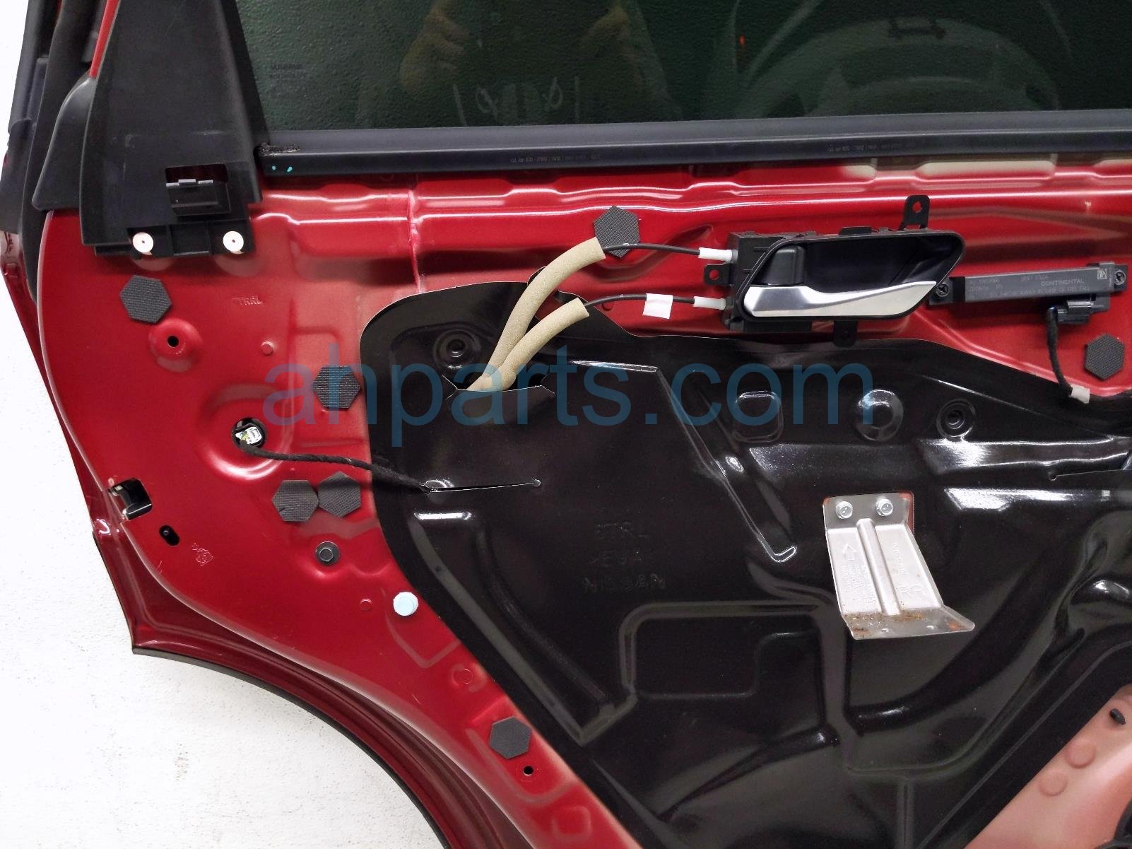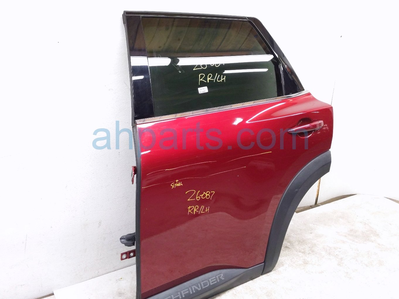 2023 Nissan Pathfinder rear driver door - red - no inside trim is a used item with a 1 year warranty. This OEM replacement rear driver door - red - no inside trim is genuine and has part numbers 82101-6TA1A, 821016TA1A, 82721-6TA0A, 827216TA0A, 82751-6TA0B, and 827516TA0B. This Nissan part is for sale (please call for pricing). This item has the following note: 'Scratches this item has some slight scuffs and some scratches.'