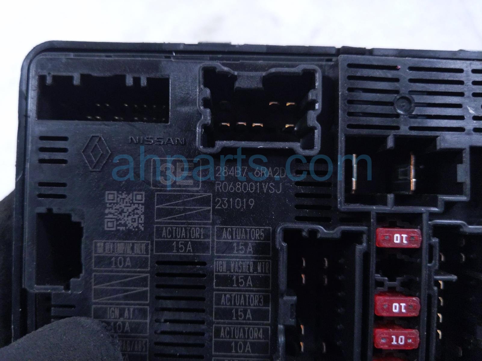 2023 Nissan Rogue driver cabin fuse junction box is a used item with a 1 year warranty. This OEM replacement driver cabin fuse junction box is genuine and has part numbers 284B7-6RA2D, and 284B76RA2D. This Nissan part is for sale (please call for pricing).