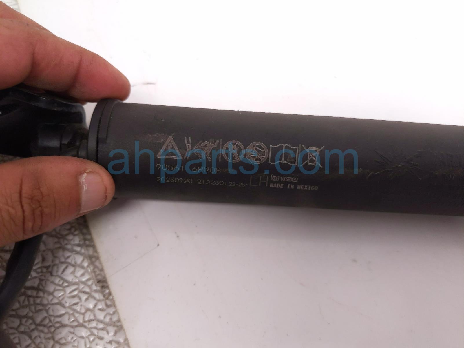 2023 Nissan Rogue driver power liftgate strut actuator is a used item with a 1 year warranty. This OEM replacement driver power liftgate strut actuator is genuine and has part numbers 90561-6RR0C, and 905616RR0C. This Nissan part is for sale (please call for pricing).