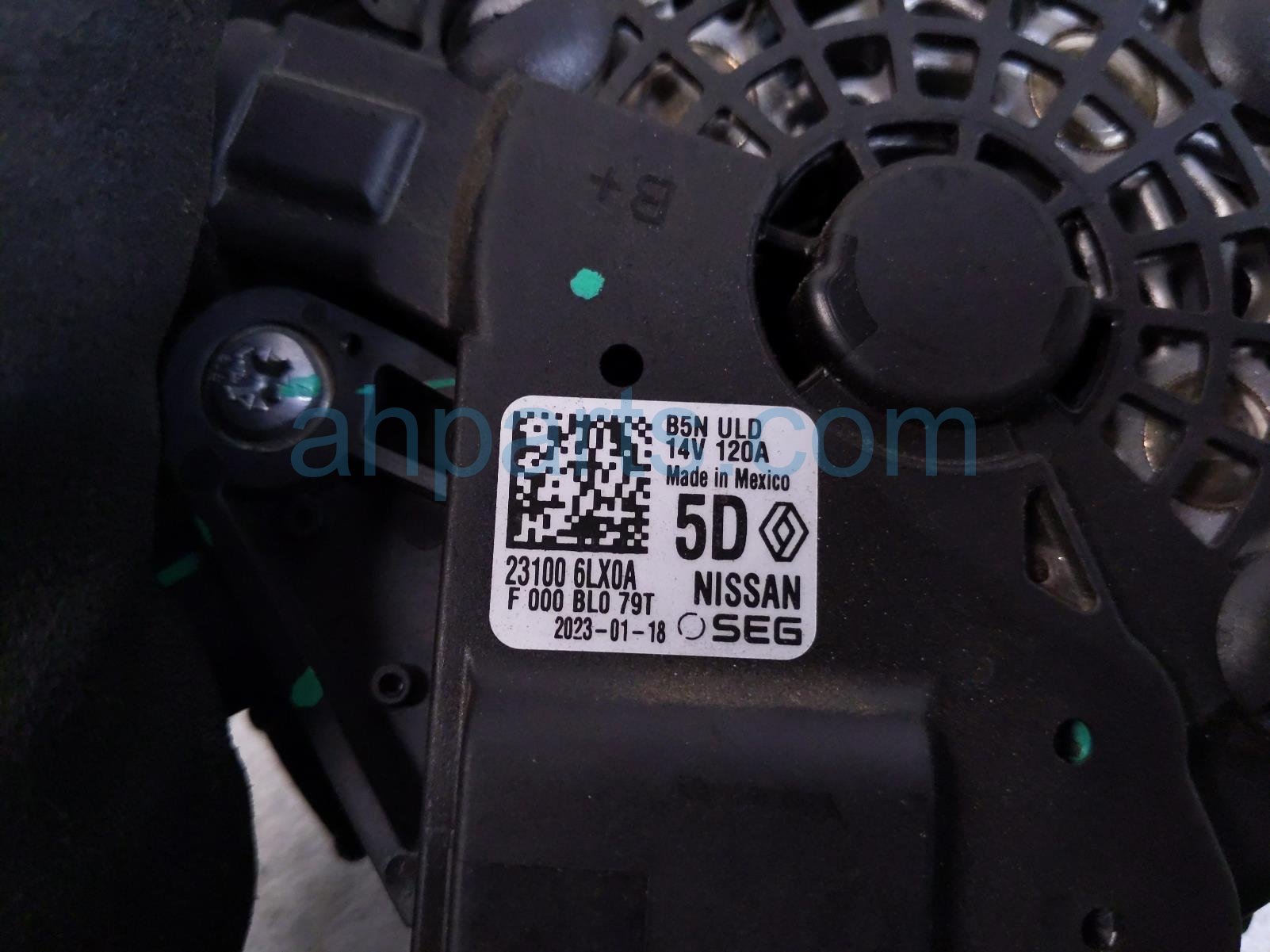 2023 Nissan Sentra alternator / generator is a used item with a 1 year warranty. This OEM replacement alternator / generator is genuine and has part numbers 23100-6LX0A, and 231006LX0A. This Nissan part is for sale (please call for pricing).
