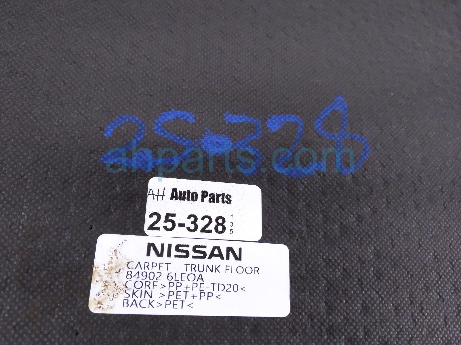 2023 Nissan Sentra trunk floor carpet - black is a used item with a 1 year warranty. This OEM replacement trunk floor carpet - black is genuine and has part numbers 84902-6LE0A, and 849026LE0A. This Nissan part is for sale (please call for pricing).
