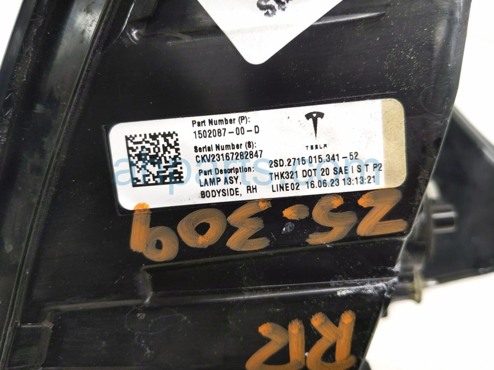 2023 Tesla Tesla 3 light / rear passenger tail lamp (on body) is a used item with a 1 year warranty. This OEM replacement light / rear passenger tail lamp (on body) is genuine and has part numbers 1502087-00-D, and 150208700D. This Tesla part is for sale (please call for pricing).