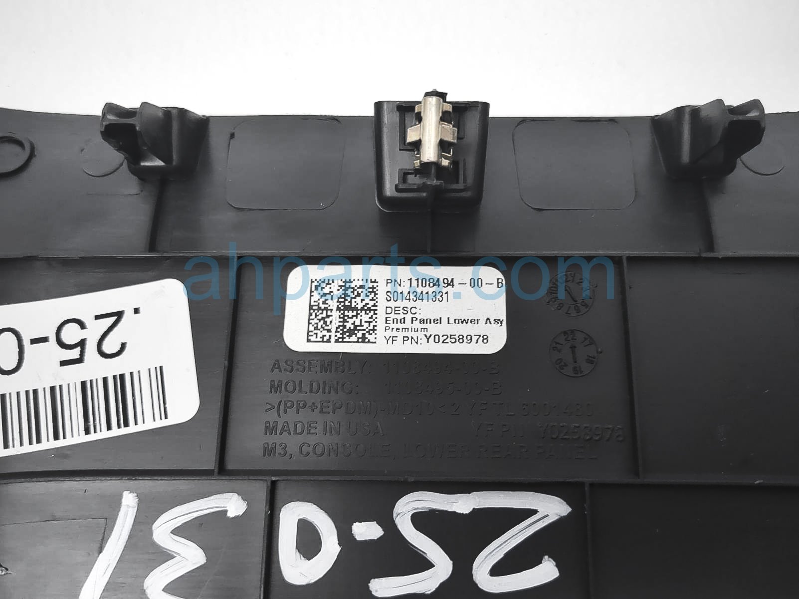 2023 Tesla Tesla 3 rear console lower trim cover - blk is a used item with a 1 year warranty. This OEM replacement rear console lower trim cover - blk is genuine and has part numbers 1108494-00-B, and 110849400B. This Tesla part sells for $25.