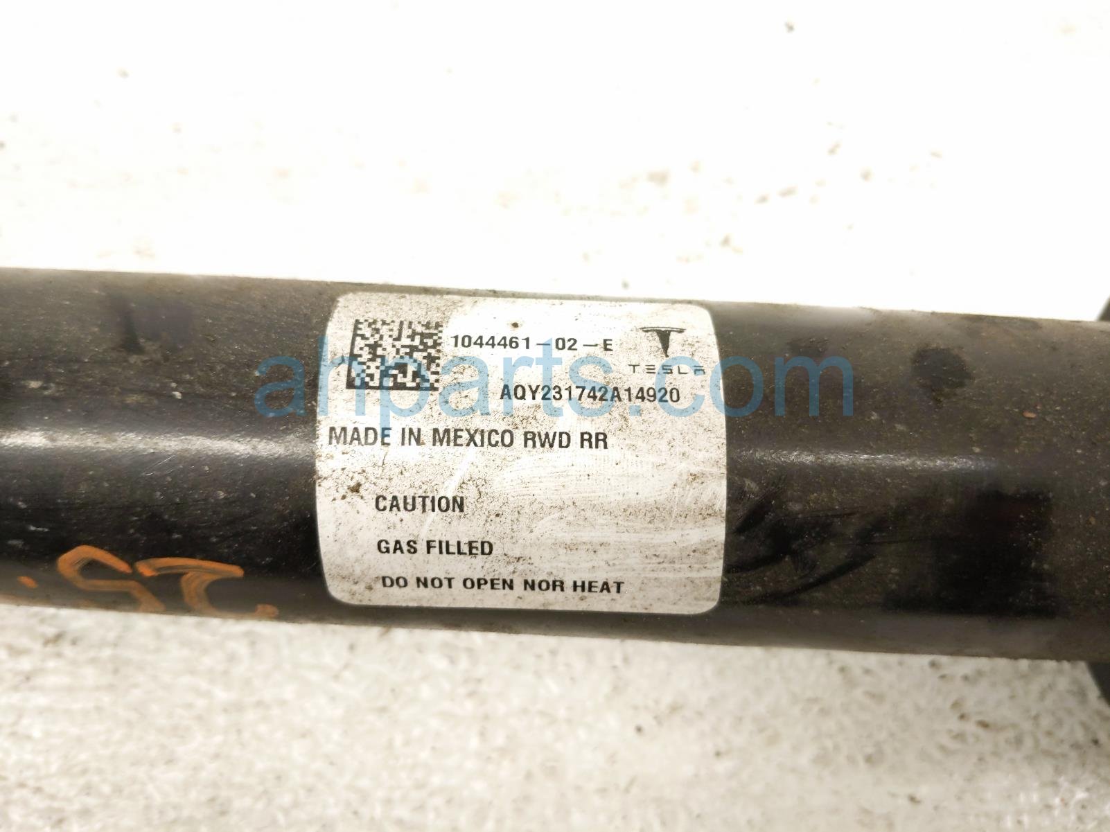 2023 Tesla Tesla 3 strut spring rear driver shock absorber is a used item with a 1 year warranty. This OEM replacement strut spring rear driver shock absorber is genuine and has part numbers 1044461-02-E, and 104446102E. This Tesla part is for sale (please call for pricing).