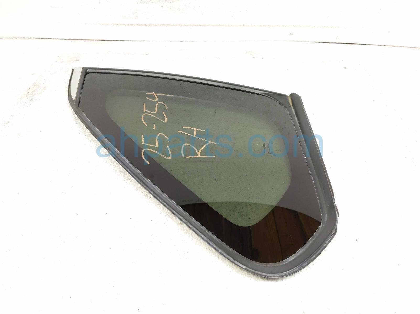 2023 Toyota RAV 4 passenger quarter window glass is a used item with a 1 year warranty. This OEM replacement passenger quarter window glass is genuine and has part numbers 62710-0R090, and 627100R090. This Toyota part sells for $49.