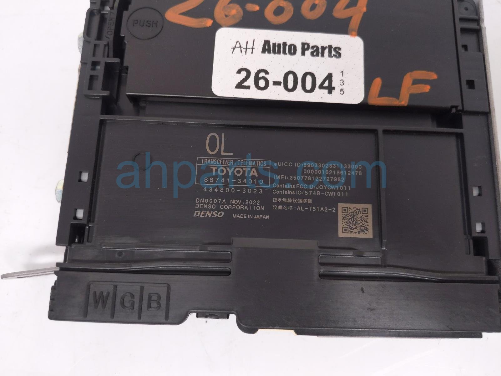 2023 Toyota Tundra telematics transceiver module is a used item with a 1 year warranty. This OEM replacement telematics transceiver module is genuine and has part numbers 86741-34010, and 8674134010. This Toyota part is for sale (please call for pricing).