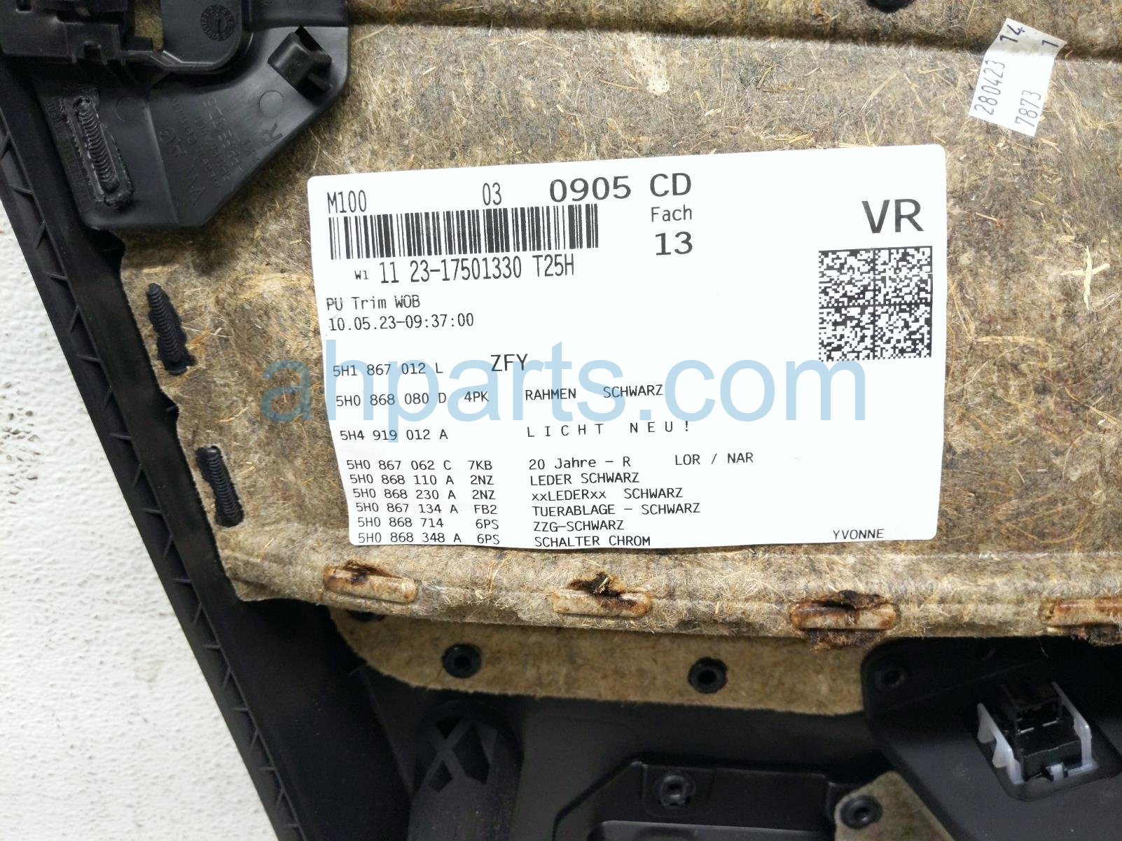 2023 Volkswagen Golf front trim liner front passenger interior door panel - black is a used item with a 1 year warranty. This OEM replacement front trim liner front passenger interior door panel - black is genuine and has part numbers 5H1-867-010-N-ZFY, 5H1867010NZFY, 5H1867012L, 5H0868080D, 5H4919012A, 5H0867062C, 5H0868110A, 5H0868230A, 5H0867134A, 5H0868714, 5H0868348A, 5H0868110A2NZ, 5H1.867.012, and 5H0.868.080D. This Volkswagen part is for sale (please call for pricing).