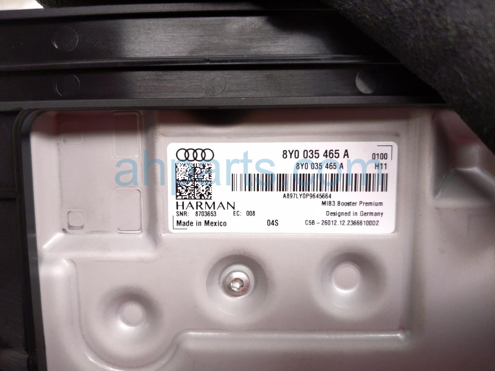 2024 Audi Q5 Audi audio amplifier rear left is a used item with a 1 year warranty. This OEM replacement audio amplifier rear left is genuine and has part numbers 8Y0-035-465-A, and 8Y0035465A. This Audi part is for sale (please call for pricing).