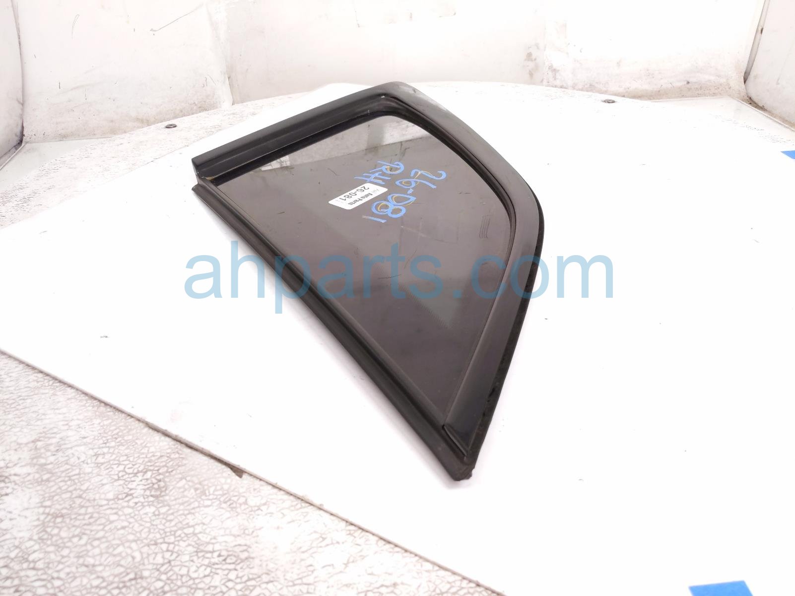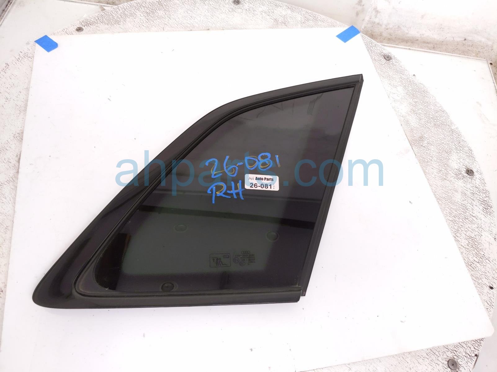2024 Audi Q5 Audi passenger quarter window glass is a used item with a 1 year warranty. This OEM replacement passenger quarter window glass is genuine and has part numbers 80A-845-298-AG-NVB, and 80A845298AGNVB. This Audi part is for sale (please call for pricing).
