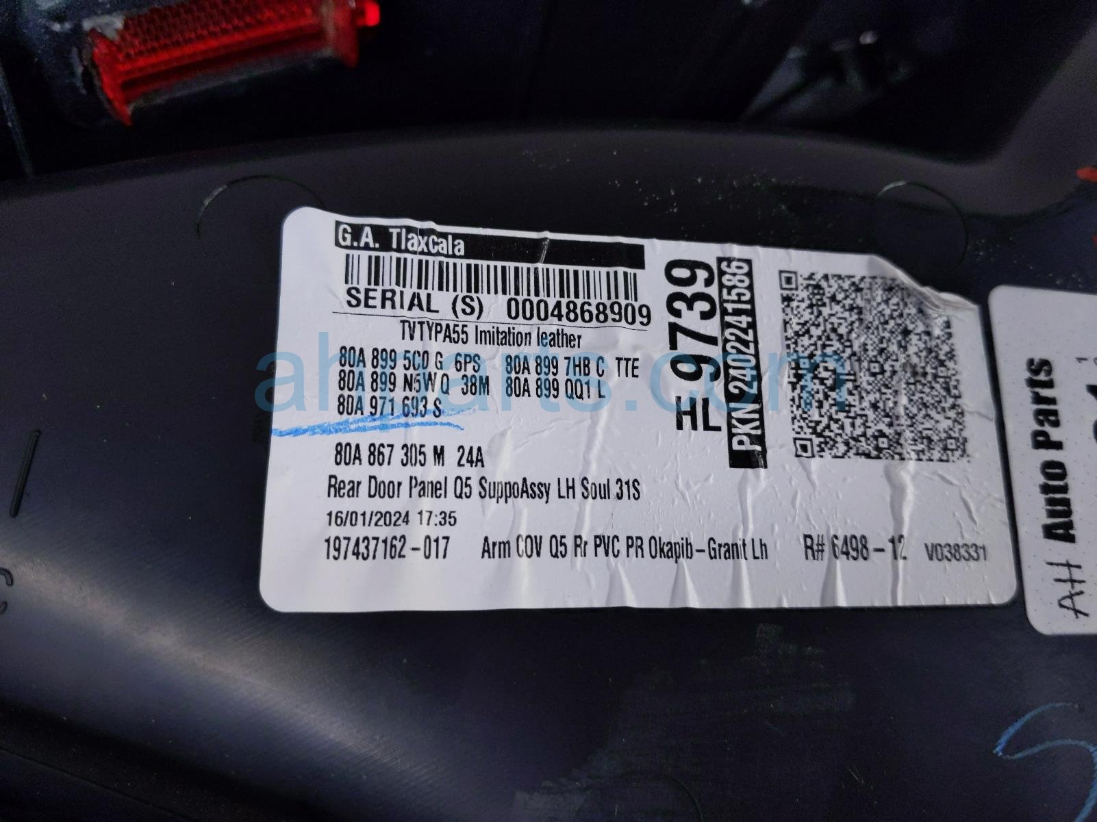 2024 Audi Q5 Audi rear trim liner rear driver interior door panel - brown is a used item with a 1 year warranty. This OEM replacement rear trim liner rear driver interior door panel - brown is genuine and has part numbers 80A-867-303-AH-KNY, and 80A867303AHKNY. This Audi part is for sale (please call for pricing).