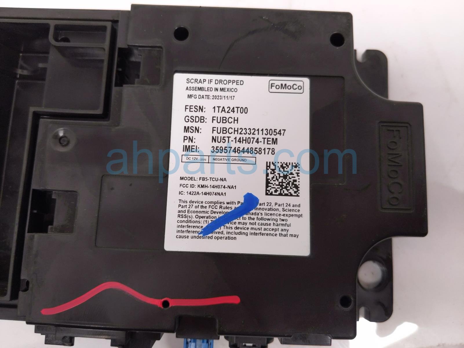 2024 Ford Mustang telematics control module unit is a used item with a 1 year warranty. This OEM replacement telematics control module unit is genuine and has part numbers NU5T-14H074-TEM, and NU5T14H074TEM. This Ford part is for sale (please call for pricing).