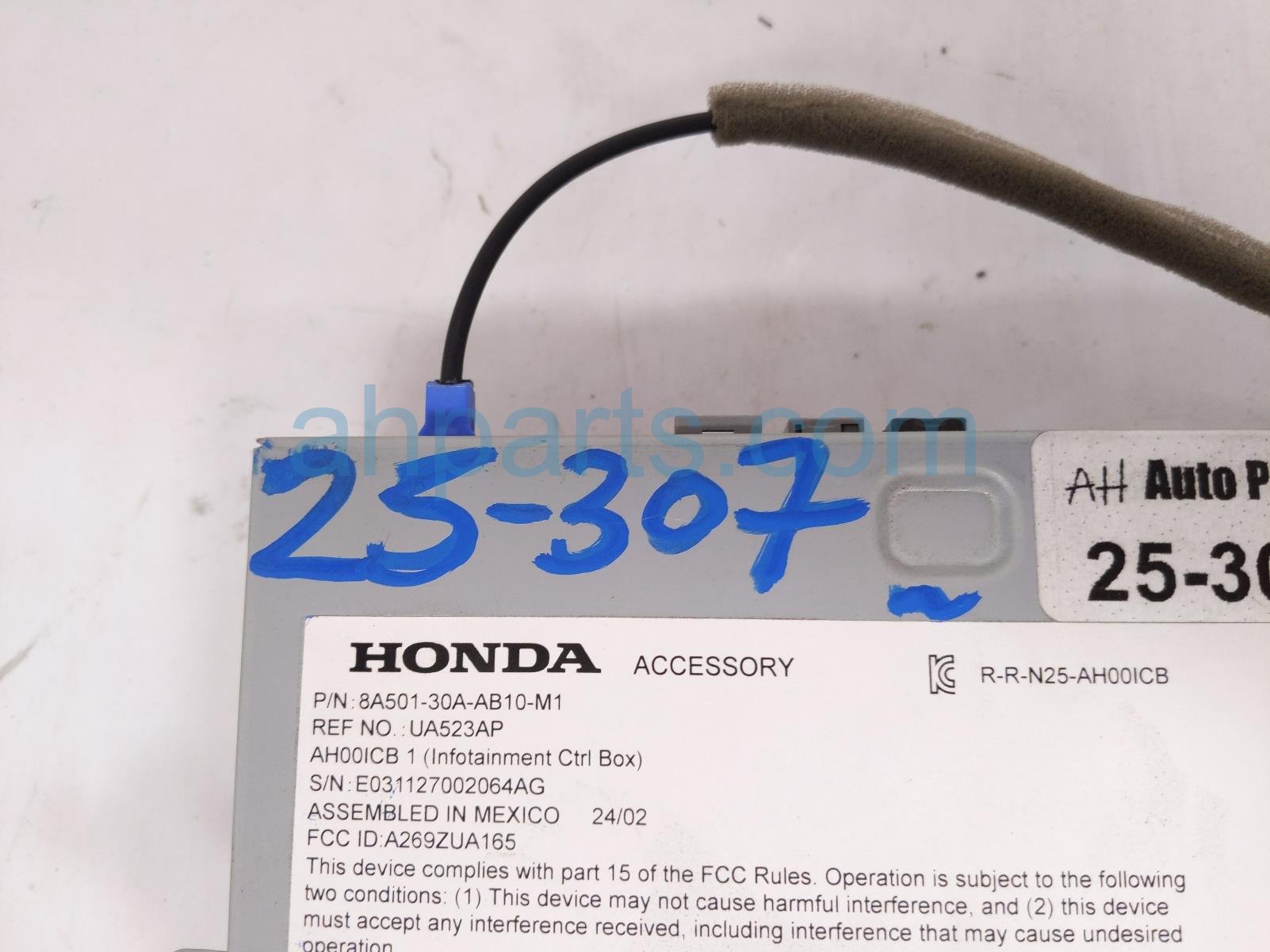 2024 Honda Accord audio radio receiver is a used item with a 1 year warranty. This OEM replacement audio radio receiver is genuine and has part numbers 8A501-30A-AB1, and 8A50130AAB1. This Honda part is for sale (please call for pricing).