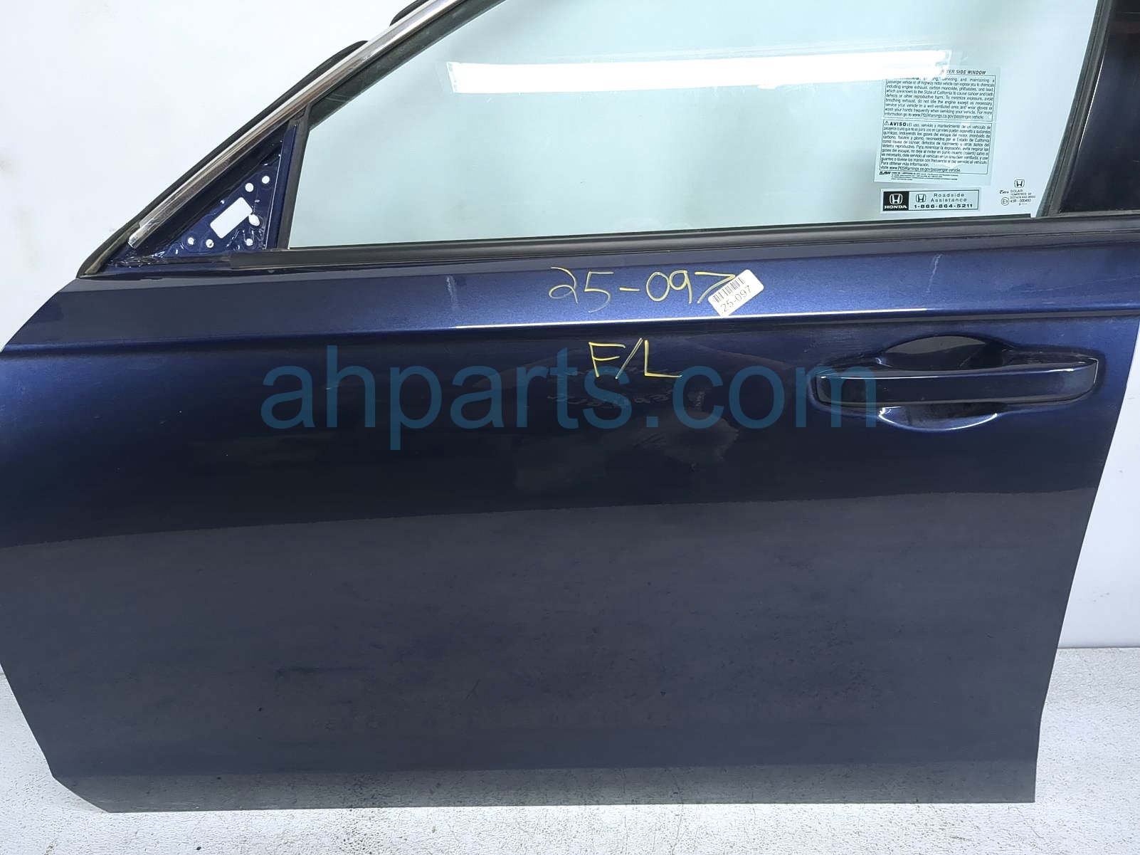 2024 Honda Accord front driver door - blue - no mirror/trim is a used item with a 1 year warranty. This OEM replacement front driver door - blue - no mirror/trim is genuine and has part numbers 67050-30A-A00ZZ, 6705030AA00ZZ, 73350-TVA-A11, 73350TVAA11, 72250-TVA-A01, and 72250TVAA01. This Honda part sells for $999.