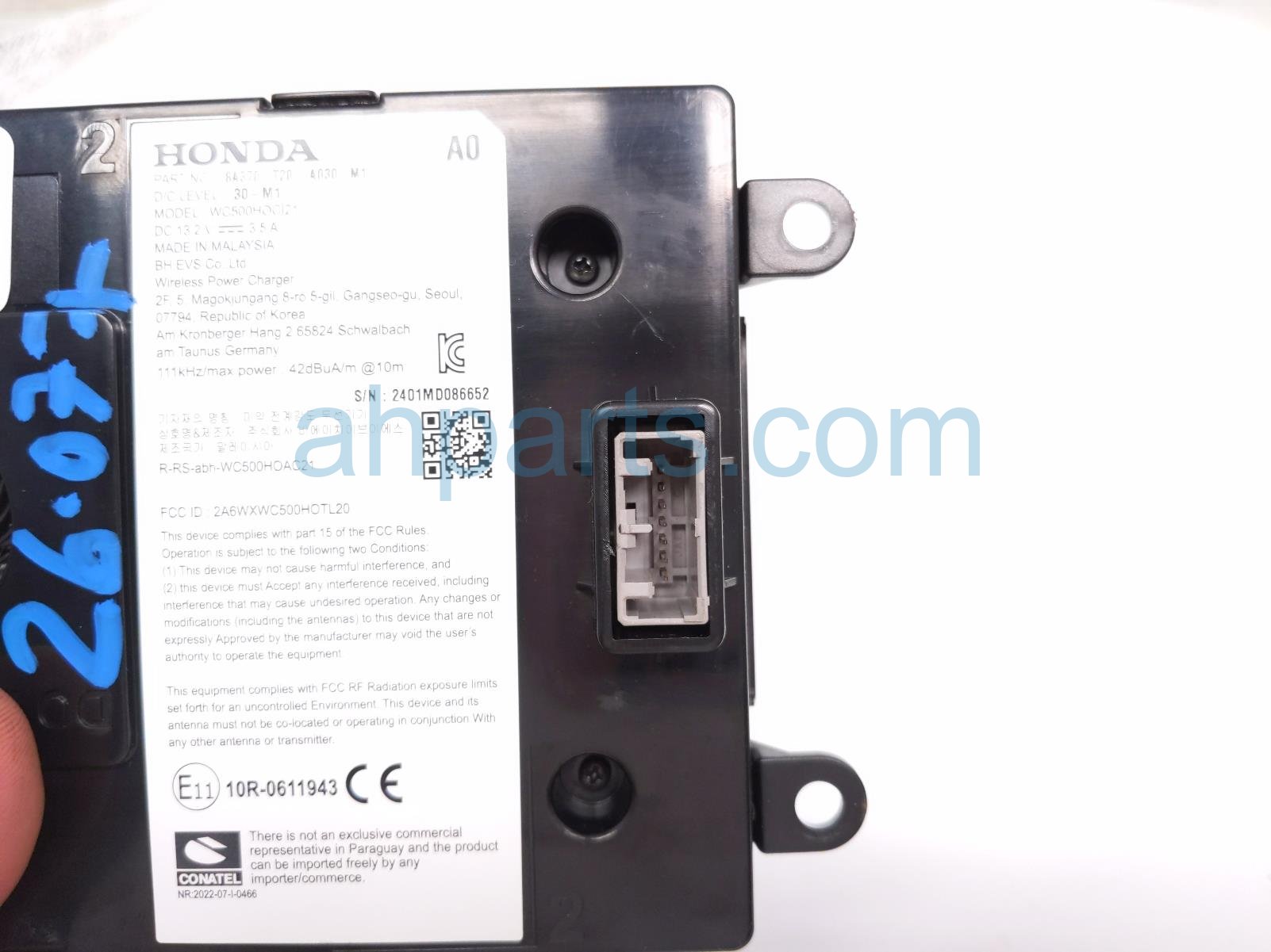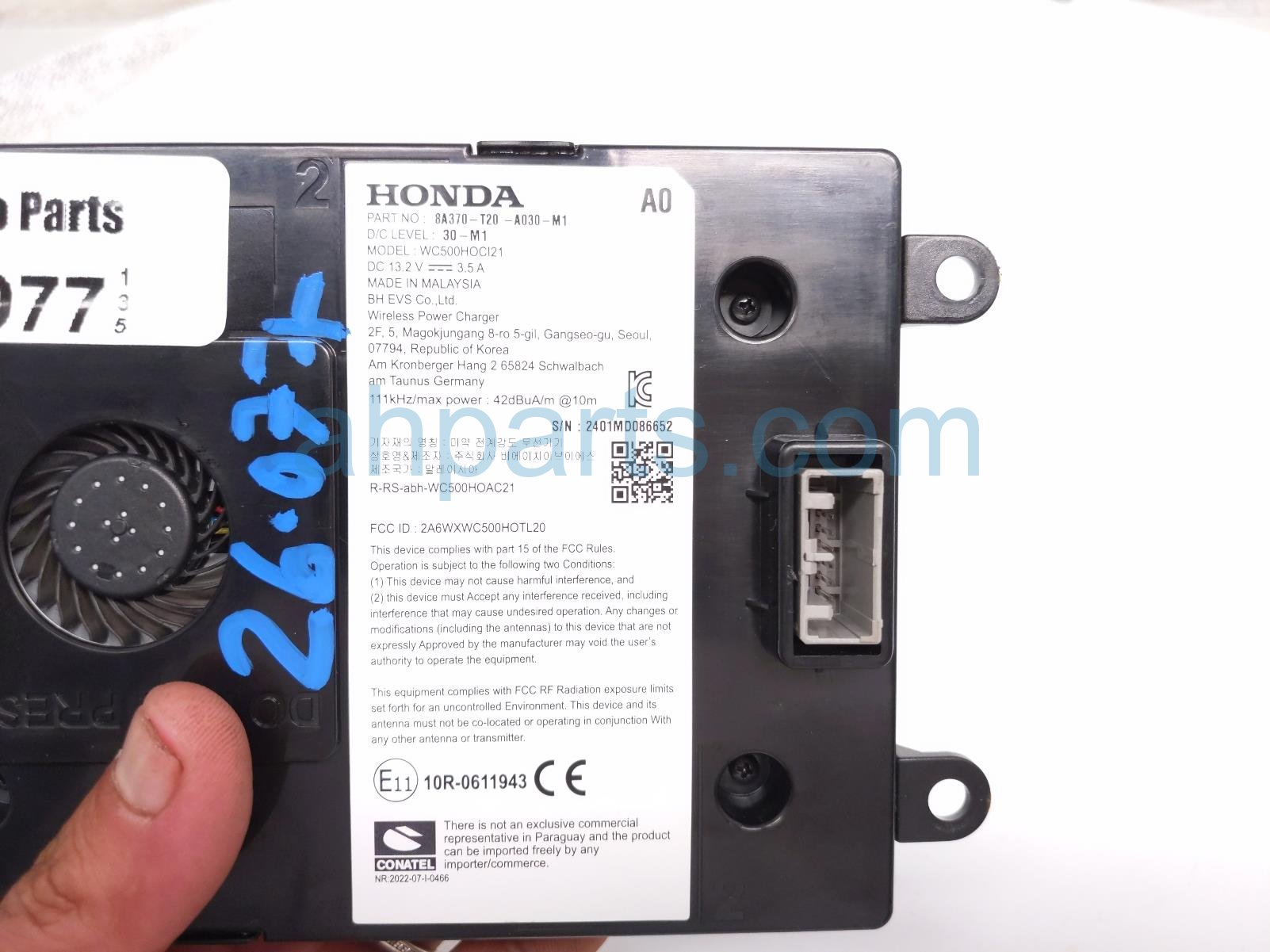 2024 Honda Accord phone charging pad assy- console mtd is a used item with a 1 year warranty. This OEM replacement phone charging pad assy- console mtd is genuine and has part numbers 8A370-T20-A03, and 8A370T20A03. This Honda part is for sale (please call for pricing).