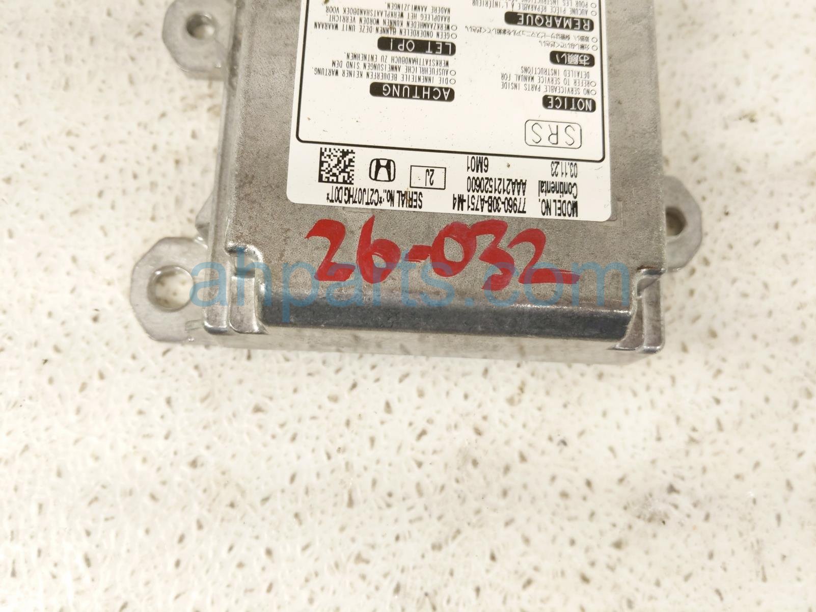 2024 Honda Accord srs airbag computer - 0 blown ab is a used item with a 1 year warranty. This OEM replacement srs airbag computer - 0 blown ab is genuine and has part numbers 77960-30B-A75, and 7796030BA75. This Honda part is for sale (please call for pricing).
