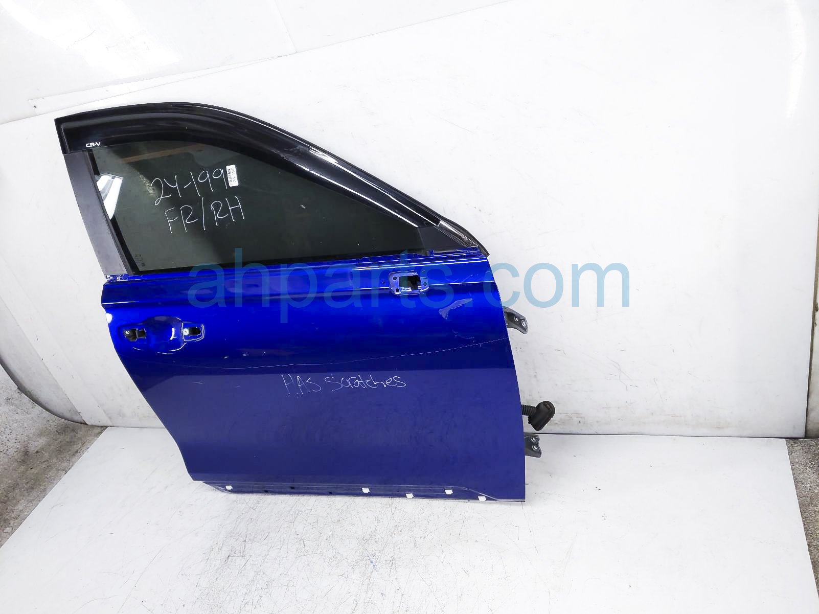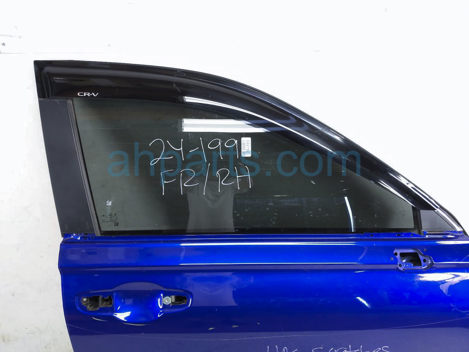 2024 Honda CR-V front passenger door - blue - no mirror/trim is a used item with a 1 year warranty. This OEM replacement front passenger door - blue - no mirror/trim is genuine and has part numbers 67010-3A0-A00ZZ, 670103A0A00ZZ, 73300-3A0-A01, and 733003A0A01. This Honda part sells for $1000. This item has the following note: 'This item has deep scratches - grade b.'