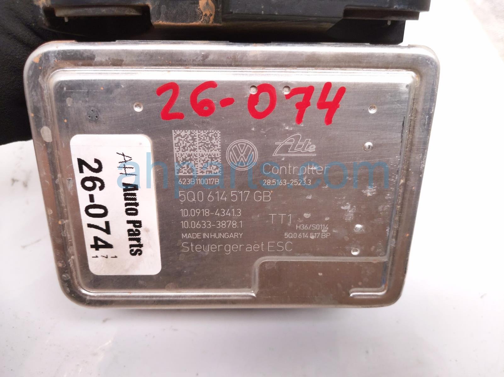 2024 Volkswagen Taos (anti lock brake) abs/vsa pump modulator is a used item with a 1 year warranty. This OEM replacement (anti lock brake) abs/vsa pump modulator is genuine and has part numbers 5Q0-614-517-GB, and 5Q0614517GB. This Volkswagen part is for sale (please call for pricing).