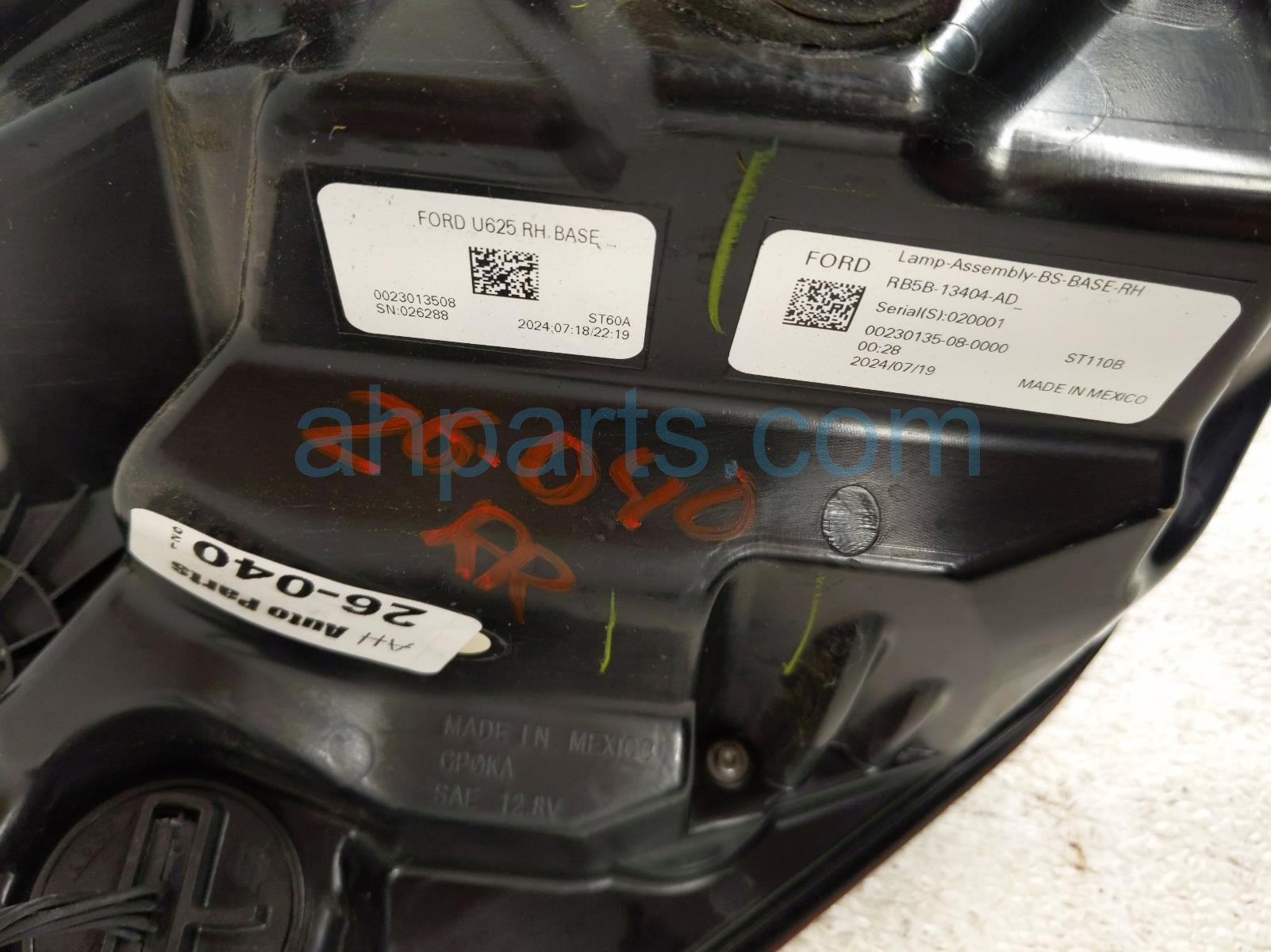 2025 Ford Explorer light / rear passenger tail lamp (on body) is a used item with a 1 year warranty. This OEM replacement light / rear passenger tail lamp (on body) is genuine and has part numbers RB5B-13404-AD, RB5B13404AD, RB5Z-13404-A, and RB5Z13404A. This Ford part is for sale (please call for pricing).