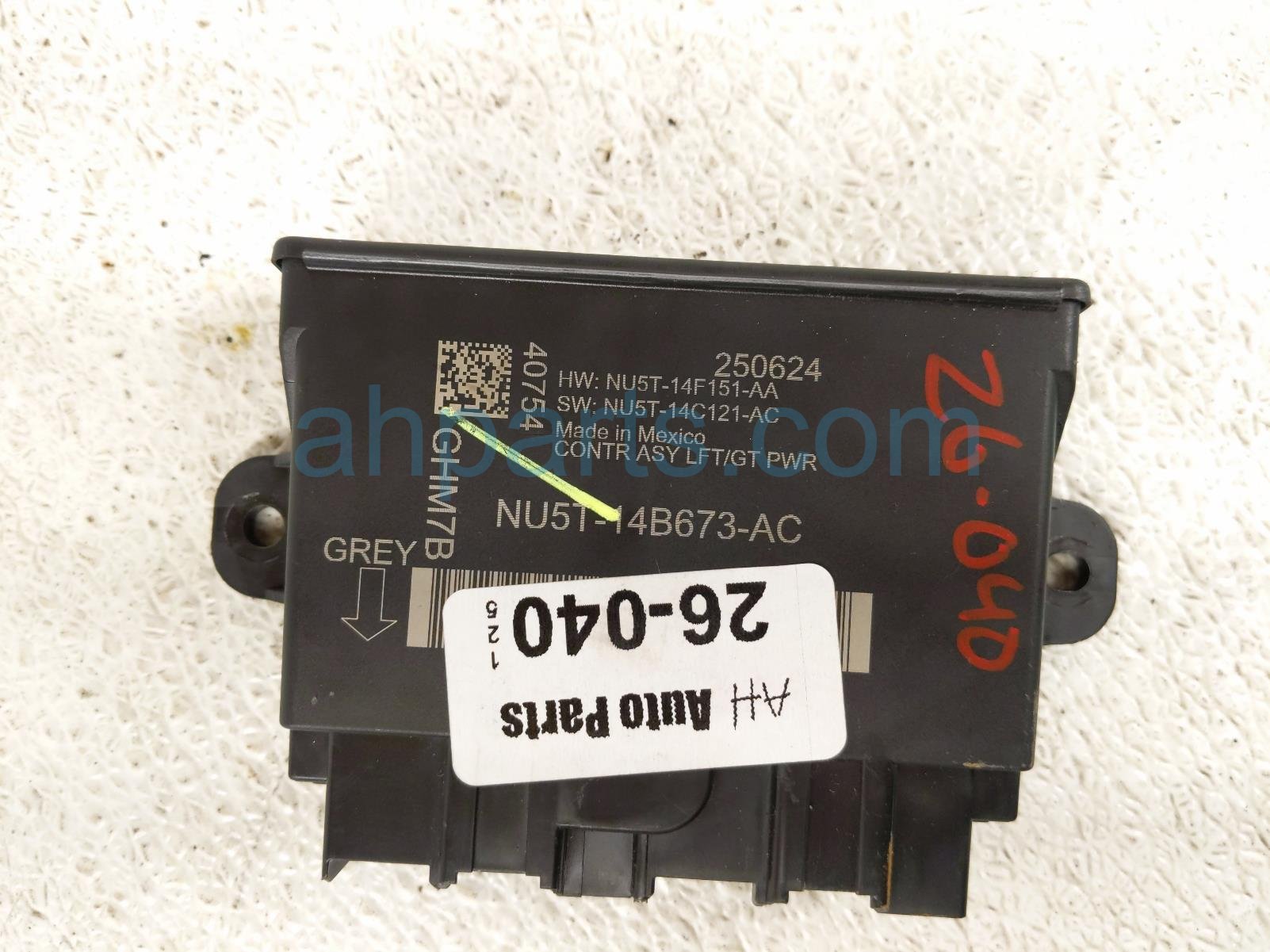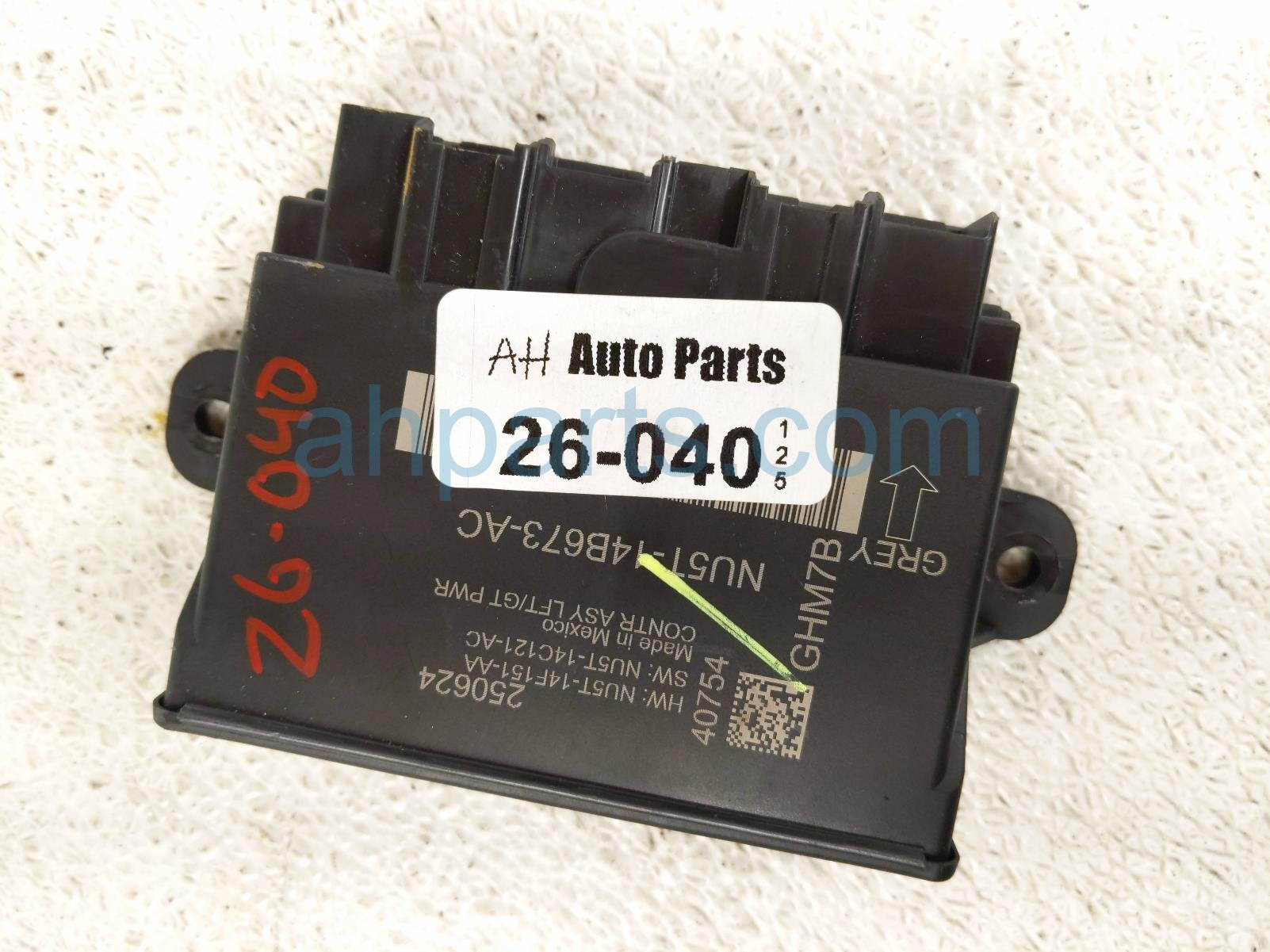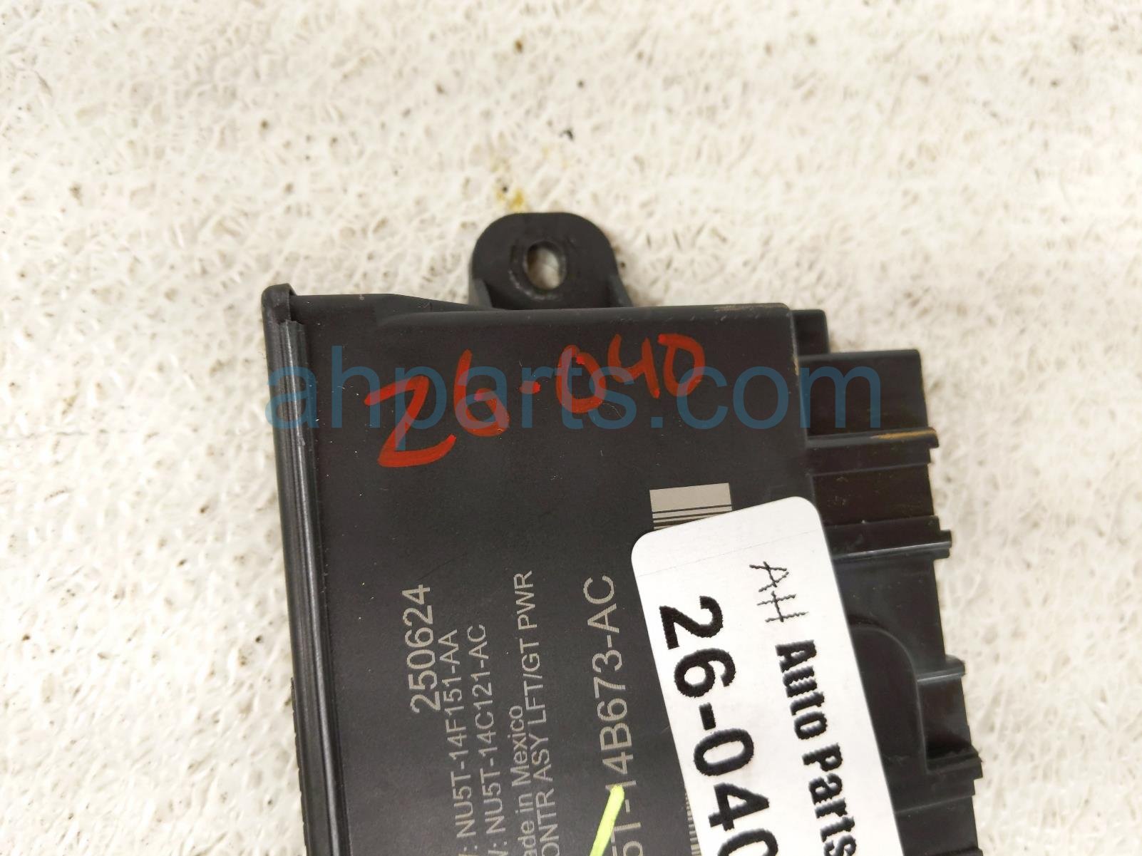 2025 Ford Explorer power liftgate ctrl module is a used item with a 1 year warranty. This OEM replacement power liftgate ctrl module is genuine and has part numbers NU5T-14B673-AC, NU5T14B673AC, NU5Z-14B291-AK, and NU5Z14B291AK. This Ford part is for sale (please call for pricing).