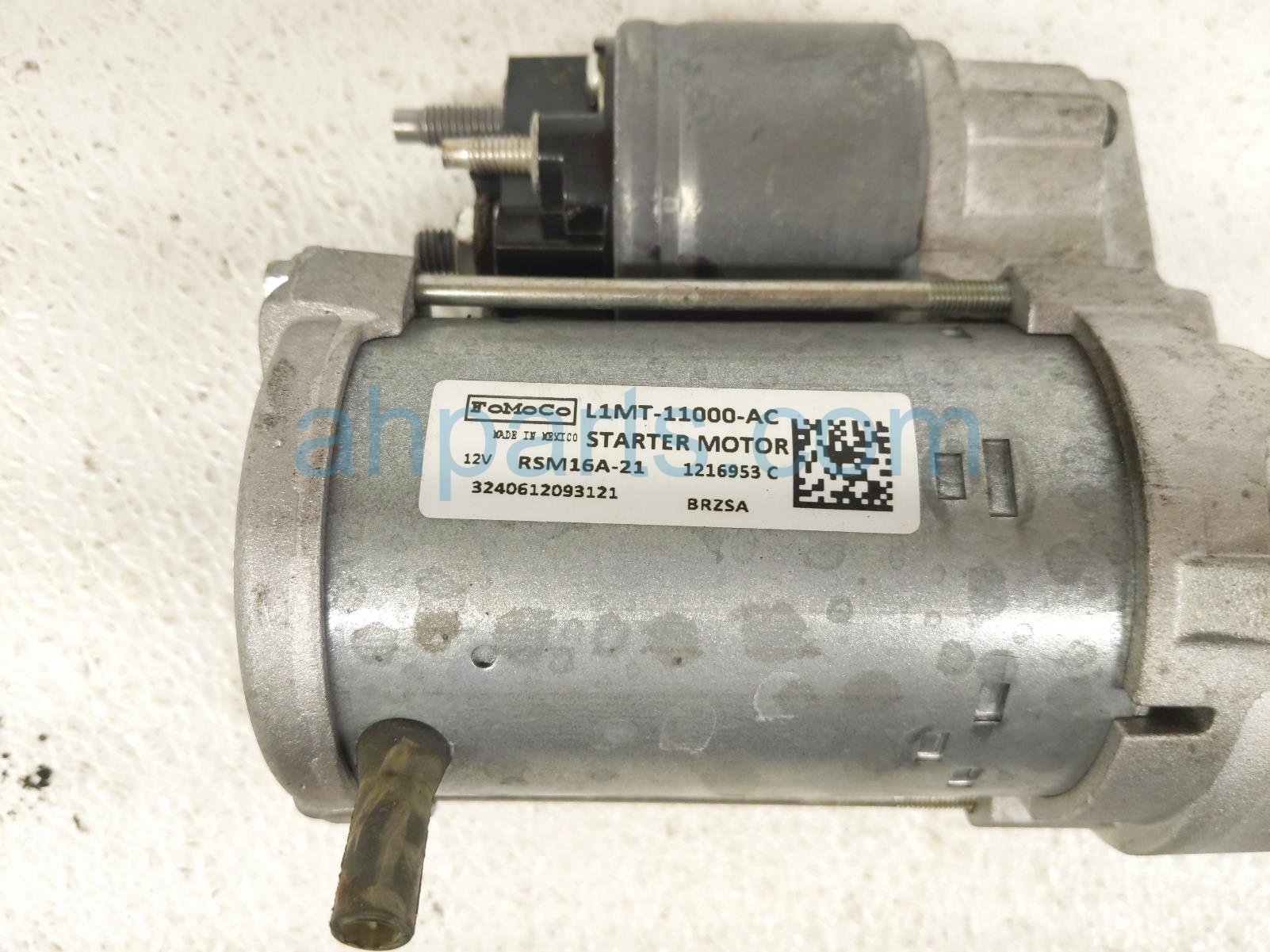 2025 Ford Explorer starter motor is a used item with a 1 year warranty. This OEM replacement starter motor is genuine and has part numbers L1MZ-11002-A, L1MZ11002A, L1MT-11000-AC, L1MT11000AC, RSM16A-21, RSM16A21, 1216953 C, 3240612093121, and BRZSA. This Ford part is for sale (please call for pricing).