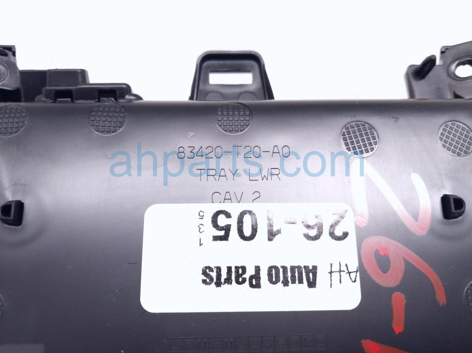 2025 Honda Civic center console storage tray -blk is a used item with a 1 year warranty. This OEM replacement center console storage tray -blk is genuine and has part numbers 83426-T20-A31ZA, 83426T20A31ZA, 8A300-T20-A01, and 8A300T20A01. This Honda part is for sale (please call for pricing).