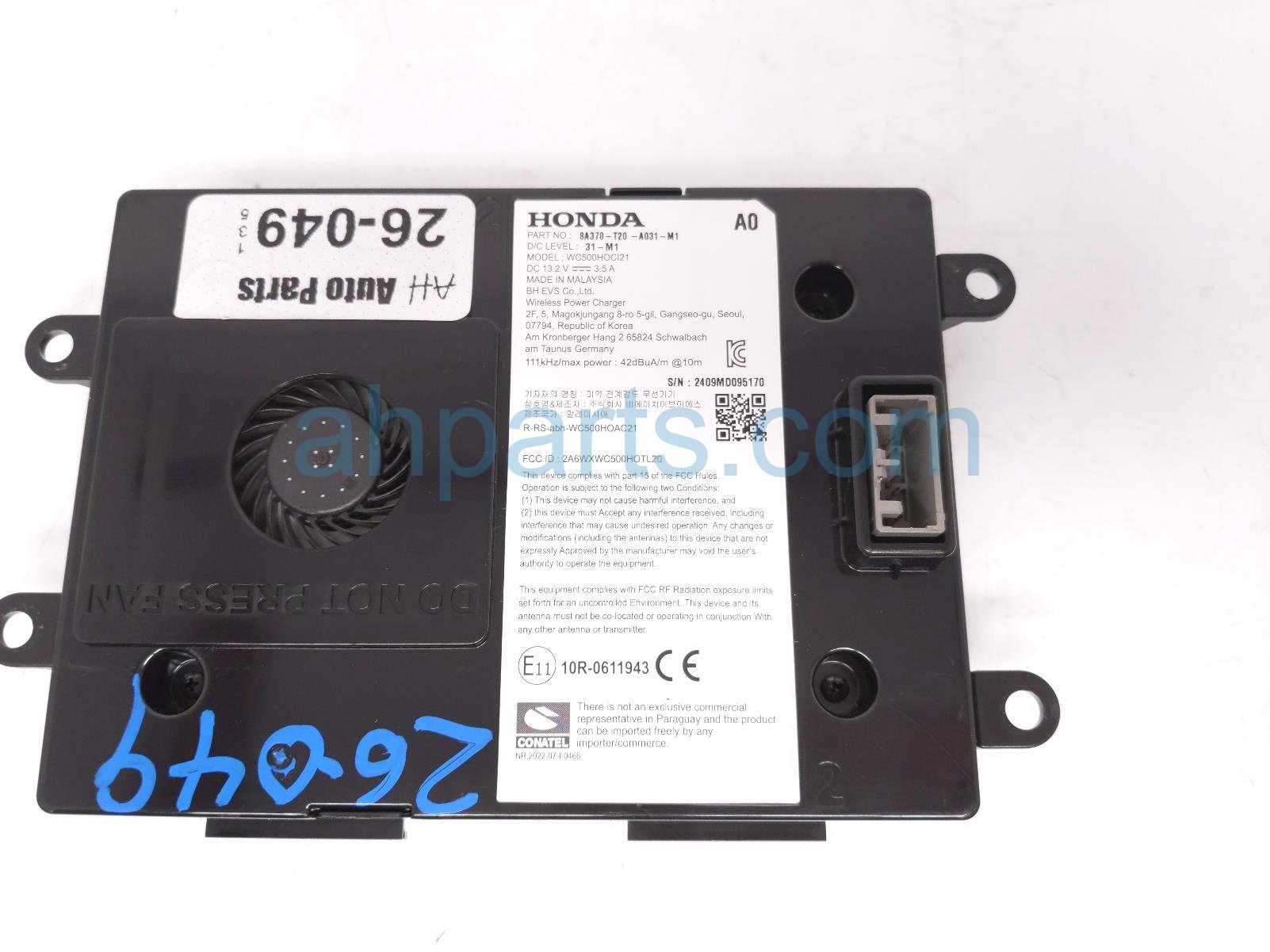 2025 Honda Civic phone charging pad assy- console mtd is a used item with a 1 year warranty. This OEM replacement phone charging pad assy- console mtd is genuine and has part numbers 8A370-T20-A03, and 8A370T20A03. This Honda part is for sale (please call for pricing).