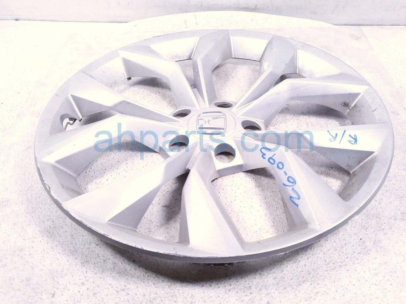 2025 Honda CR-V hub cap rear passenger 17'' wheel cover * is a used item with a 1 year warranty. This OEM replacement hub cap rear passenger 17'' wheel cover * is genuine and has part numbers 44733-3A0-A02, and 447333A0A02. This Honda part is for sale (please call for pricing). This item has the following note: 'Has some curb rashes.'
