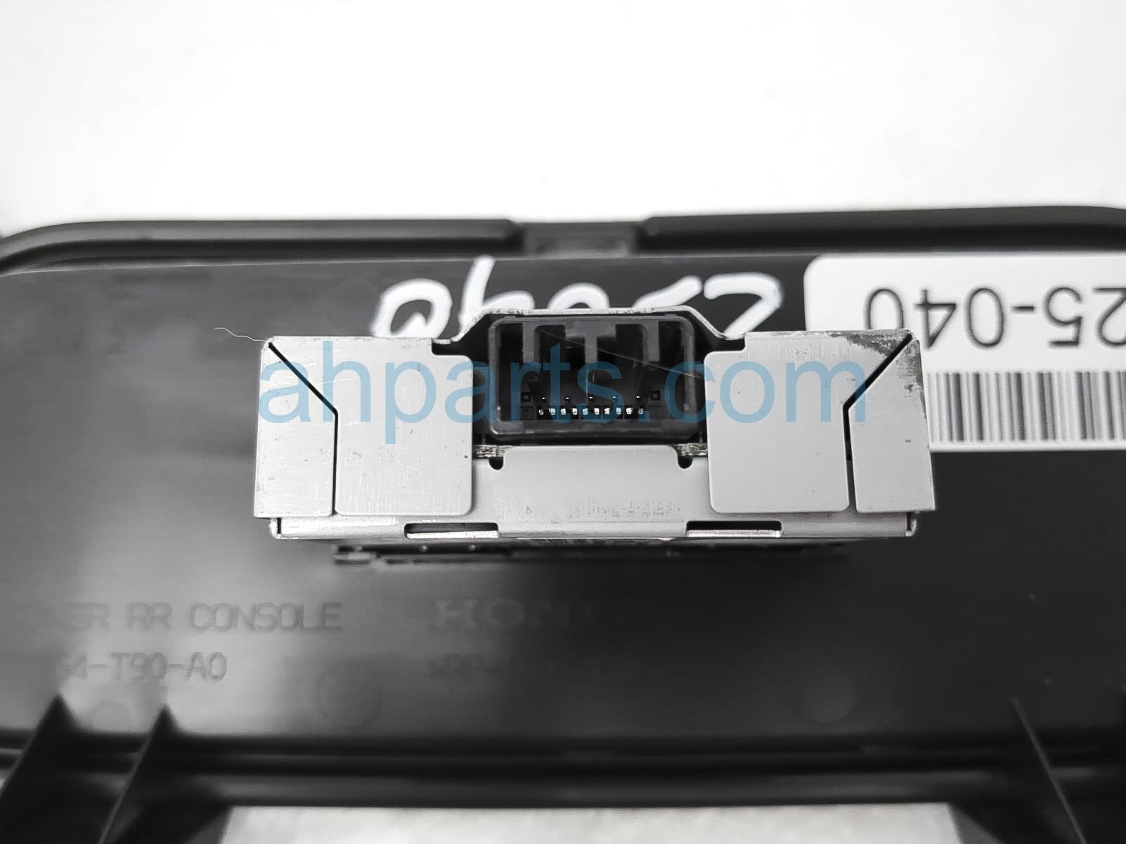 2025 Honda Pilot console rear charge port w/trim- blk is a used item with a 1 year warranty. This OEM replacement console rear charge port w/trim- blk is genuine and has part numbers 83454-T90-A01ZA, 83454T90A01ZA, 8A350-TJB-A01, and 8A350TJBA01. This Honda part sells for $40. This item has the following note: 'Console mounted *.'