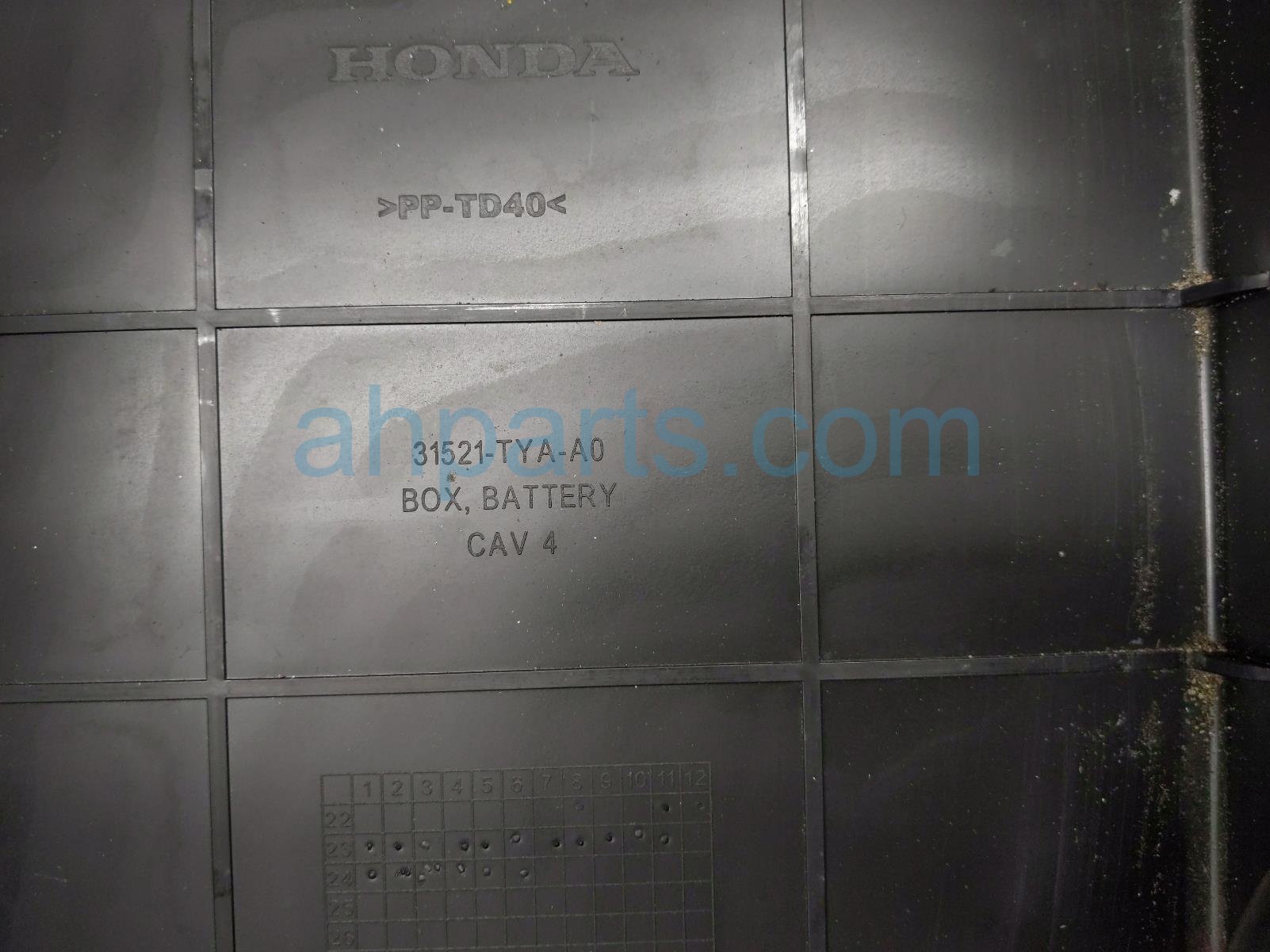 2025 Honda Pilot tray battery box w/blower vent assy is a used item with a 1 year warranty. This OEM replacement tray battery box w/blower vent assy is genuine and has part numbers 31521-TYA-A0, 31521TYAA0, 31651-T90-A011-M1, 31651T90A011M1, G10D12BS1DZ-90AA6, and G10D12BS1DZ90AA6. This Honda part sells for $75.