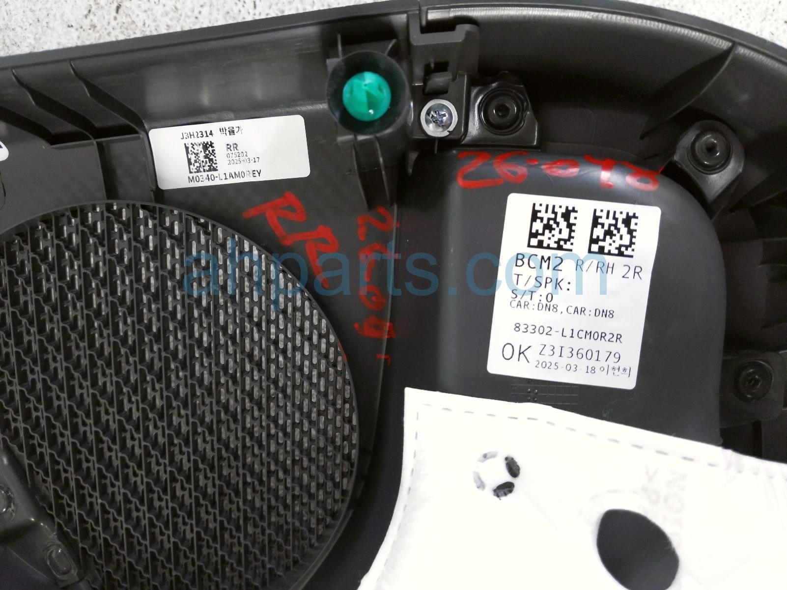 2025 Hyundai Sonata rear trim liner rear passenger interior door panel - grey is a used item with a 1 year warranty. This OEM replacement rear trim liner rear passenger interior door panel - grey is genuine and has part numbers 83308-K2010-NNB, 83308K2010NNB, M0340-L1AMOREY, M0340L1AMOREY, 93590L1005, M3321-L1000YTH, and M3321L1000YTH. This Hyundai part is for sale (please call for pricing).