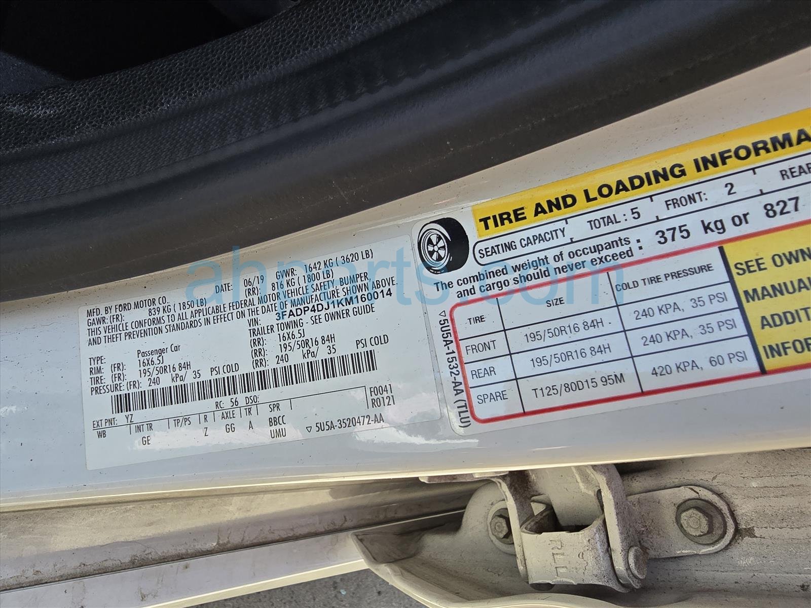 Car 25-112-3 - 2019 Ford Fiesta 4 Door Hatchback