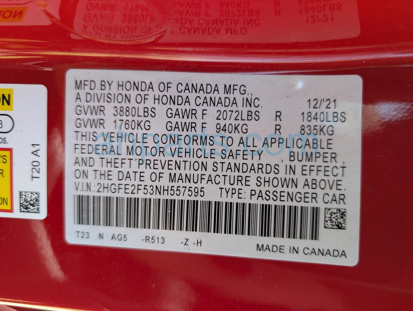 Car 25-171-3 - 2022 Honda Civic 4 Door Sedan