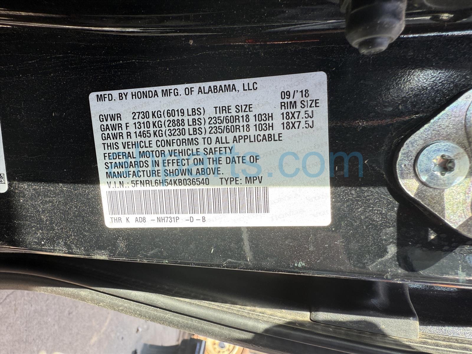 Car 25-107-3 - 2019 Honda Odyssey Passenger Van 4 Door