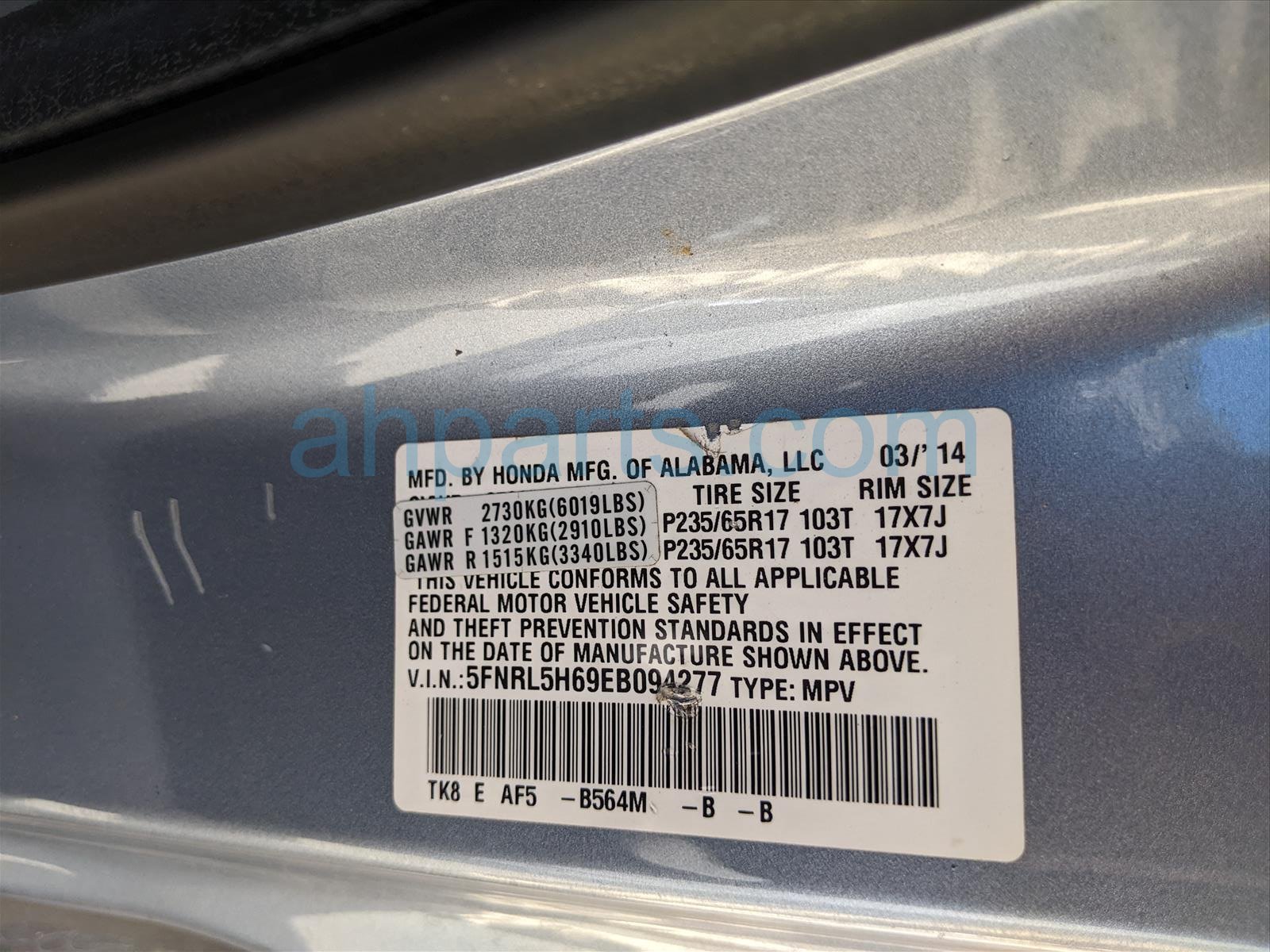 Car 25-232-3 - 2014 Honda Odyssey Passenger Van 4 Door