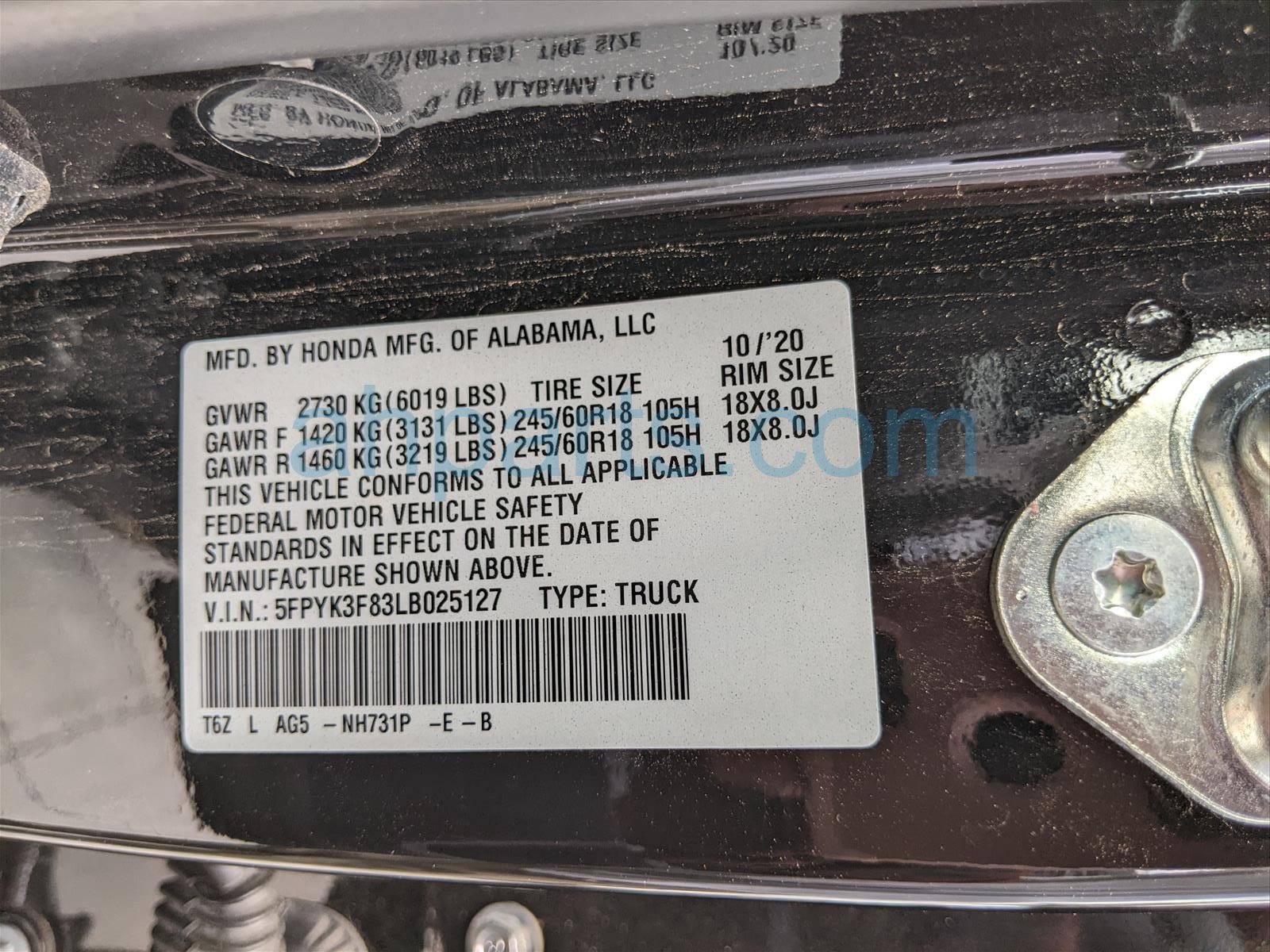Car 25-240-3 - 2020 Honda Ridgeline Crew Cab 4 Door